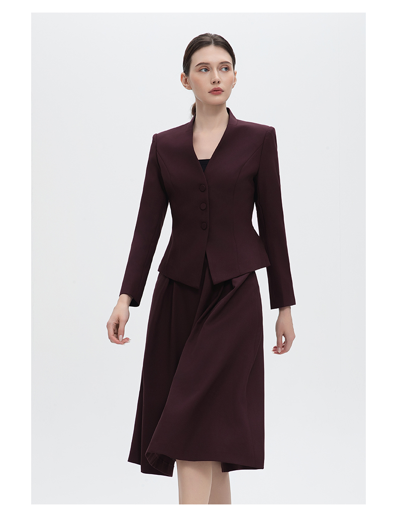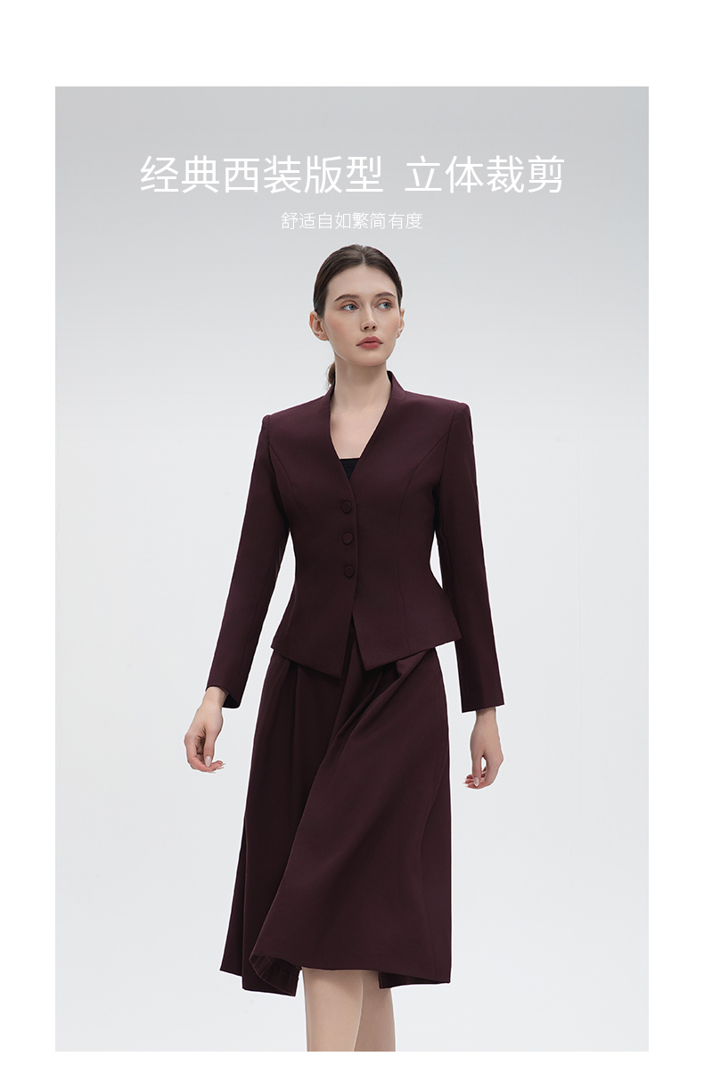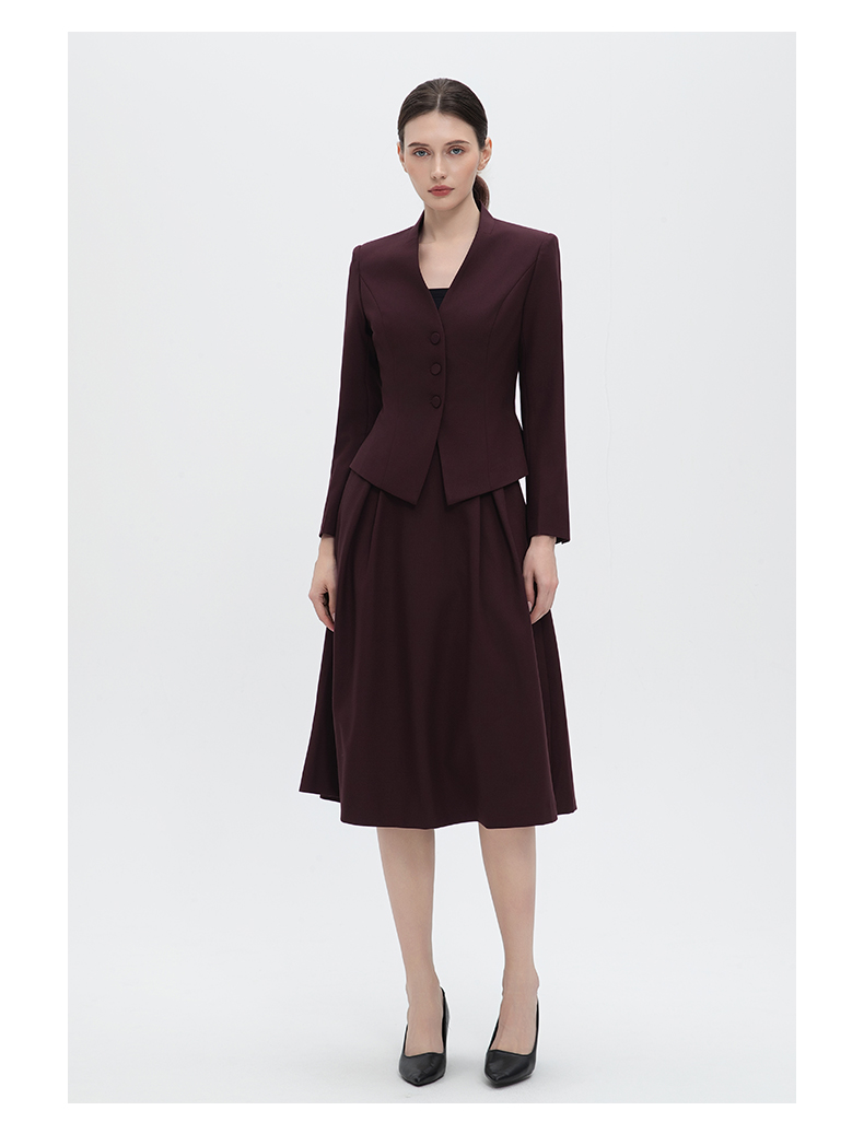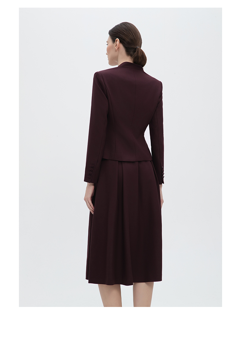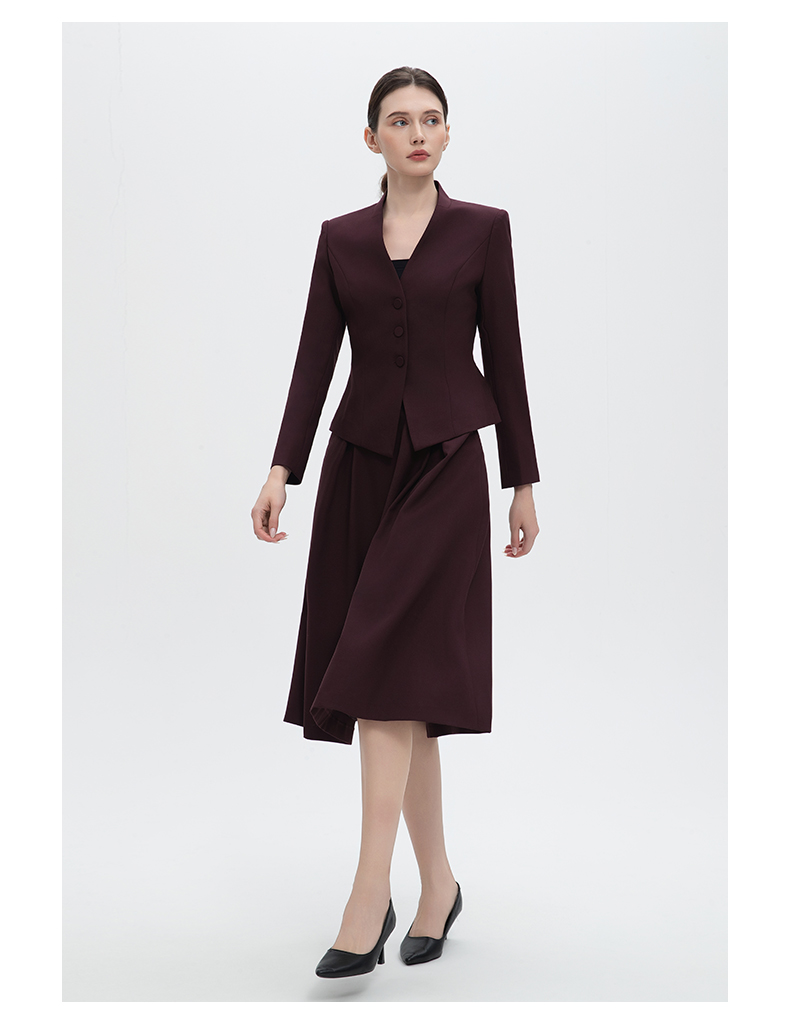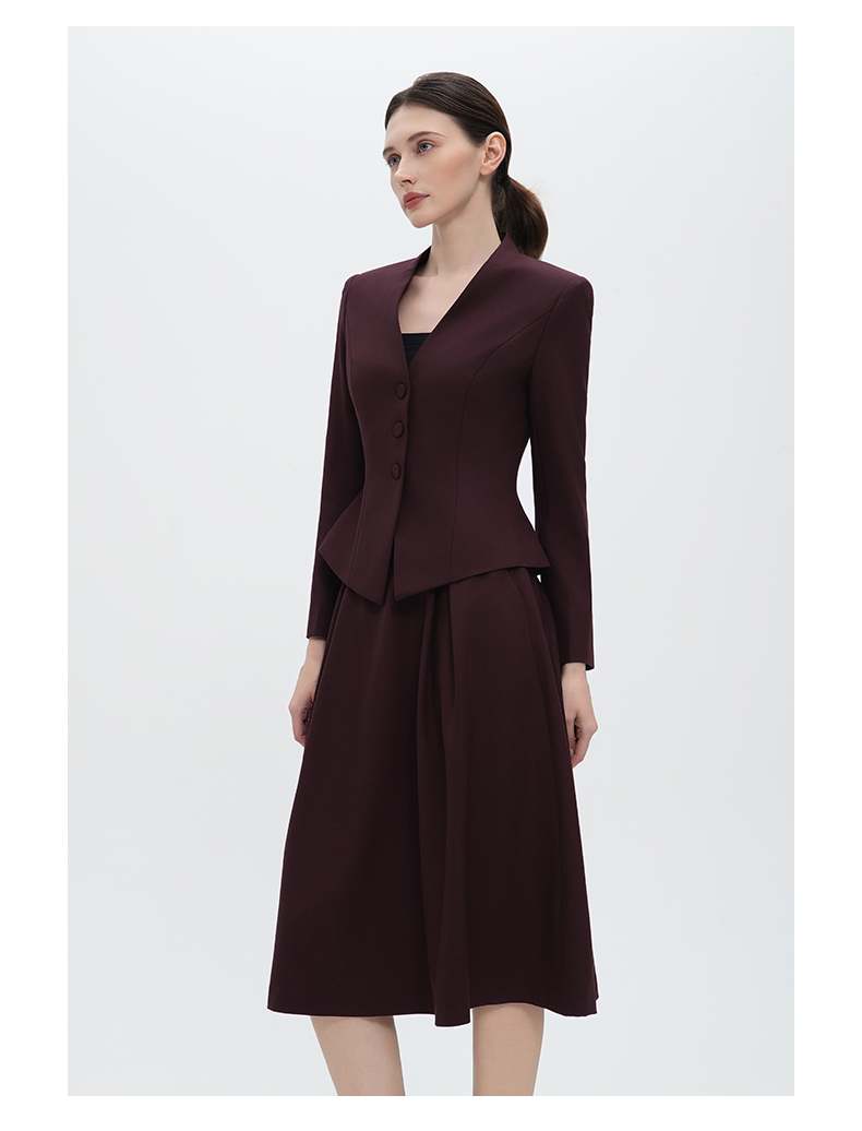 IWY/安可拉红沉稳大气西装套裙新款V领柔美修饰颈部收腰显曲线百褶半裙优雅松弛CS14336