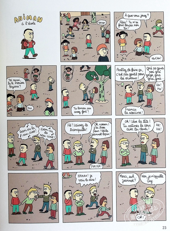 《阿尼曼》是一本关于弗朗西斯(又名阿尼曼)生活的漫画书,故事短小而幽默,一环扣一环。该原则的灵感来自于20世纪80年代的电视连续剧《双面怪杰》,其中一名男子将自己转化为动物来解决调查问题。这些故事不仅涉及调查,还涉及阿尼曼的生活,以及他与他的死敌Objecto的会面和战斗。这本书以绘画作为点缀,就像阿努克·里卡德以前的一些专辑一样。