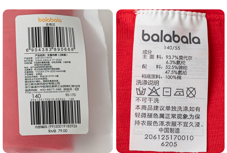 巴拉巴拉女童内裤莫代尔儿童三角短裤不夹PP抗菌裆柔软舒适两条装