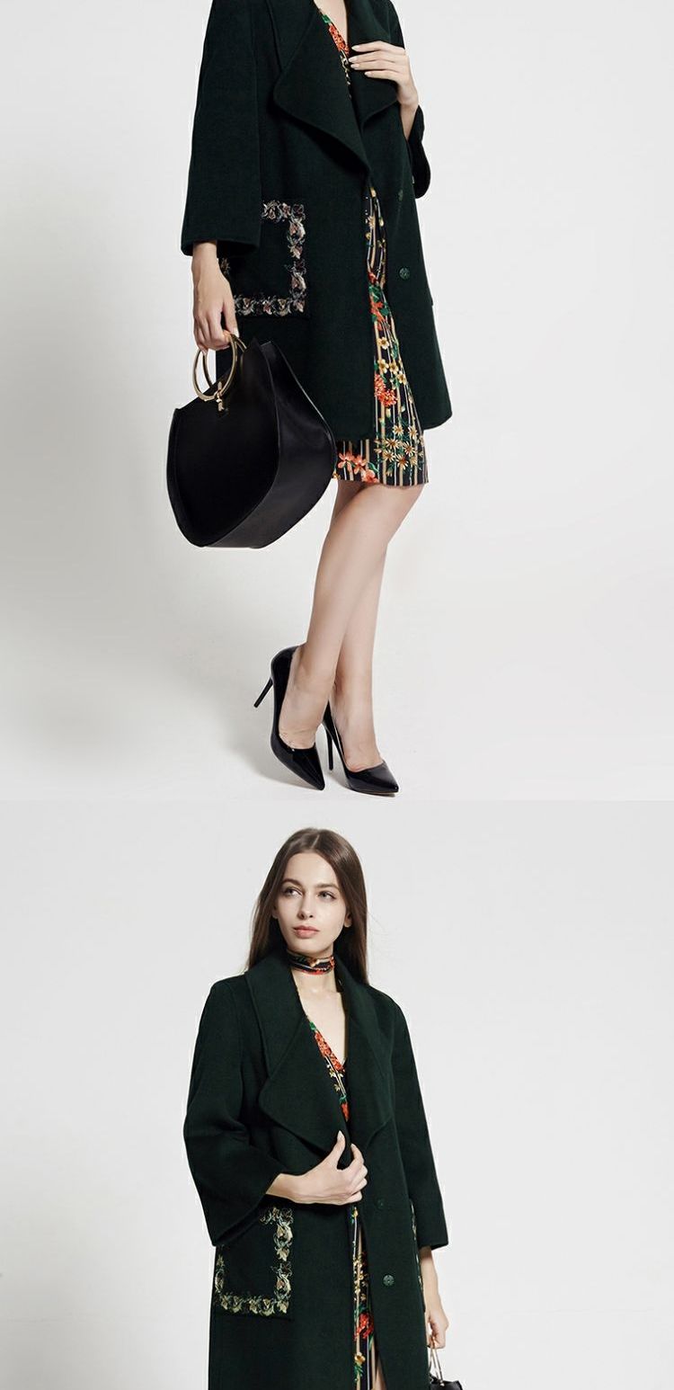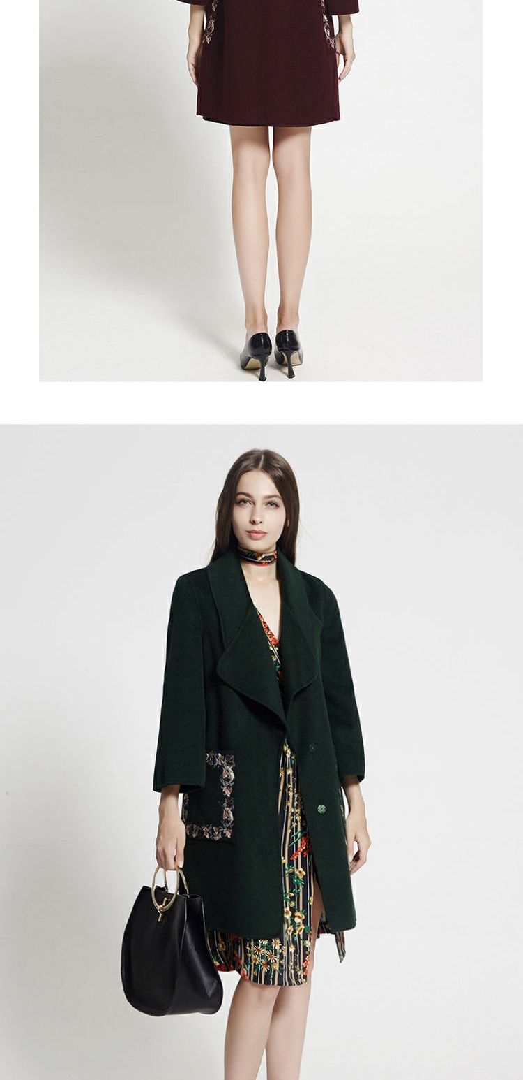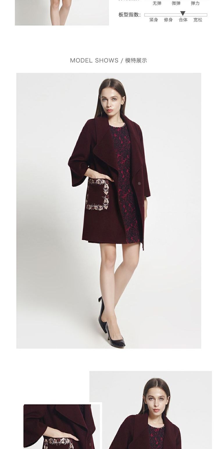 佐尔美冬季新品女士纯色中长款修身羊毛外套E74ZZ33