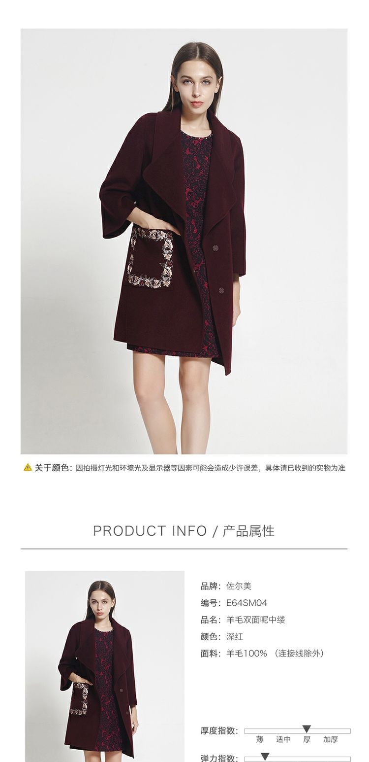 佐尔美冬新品女士针织山羊绒毛双面呢外套中长款大衣E74SM35