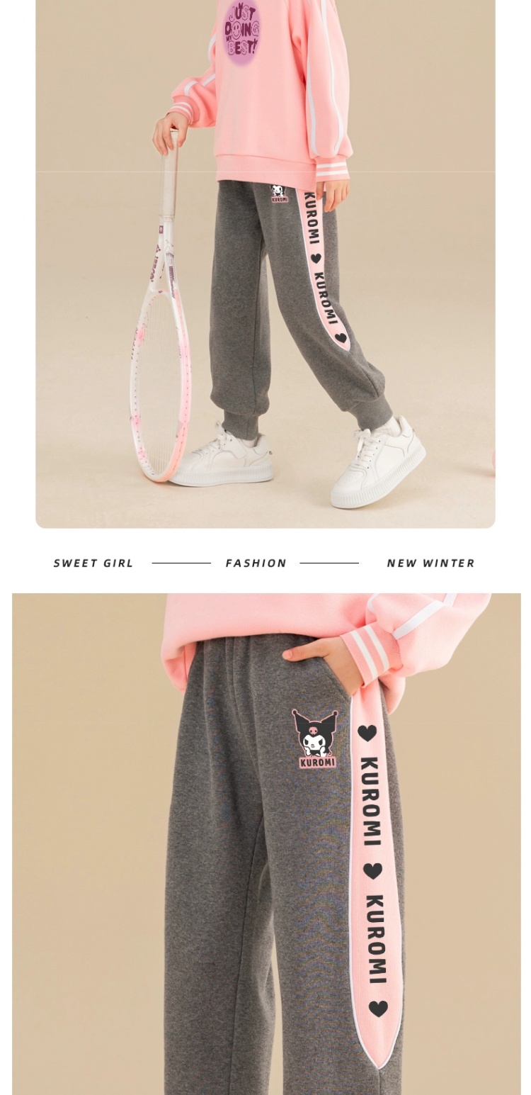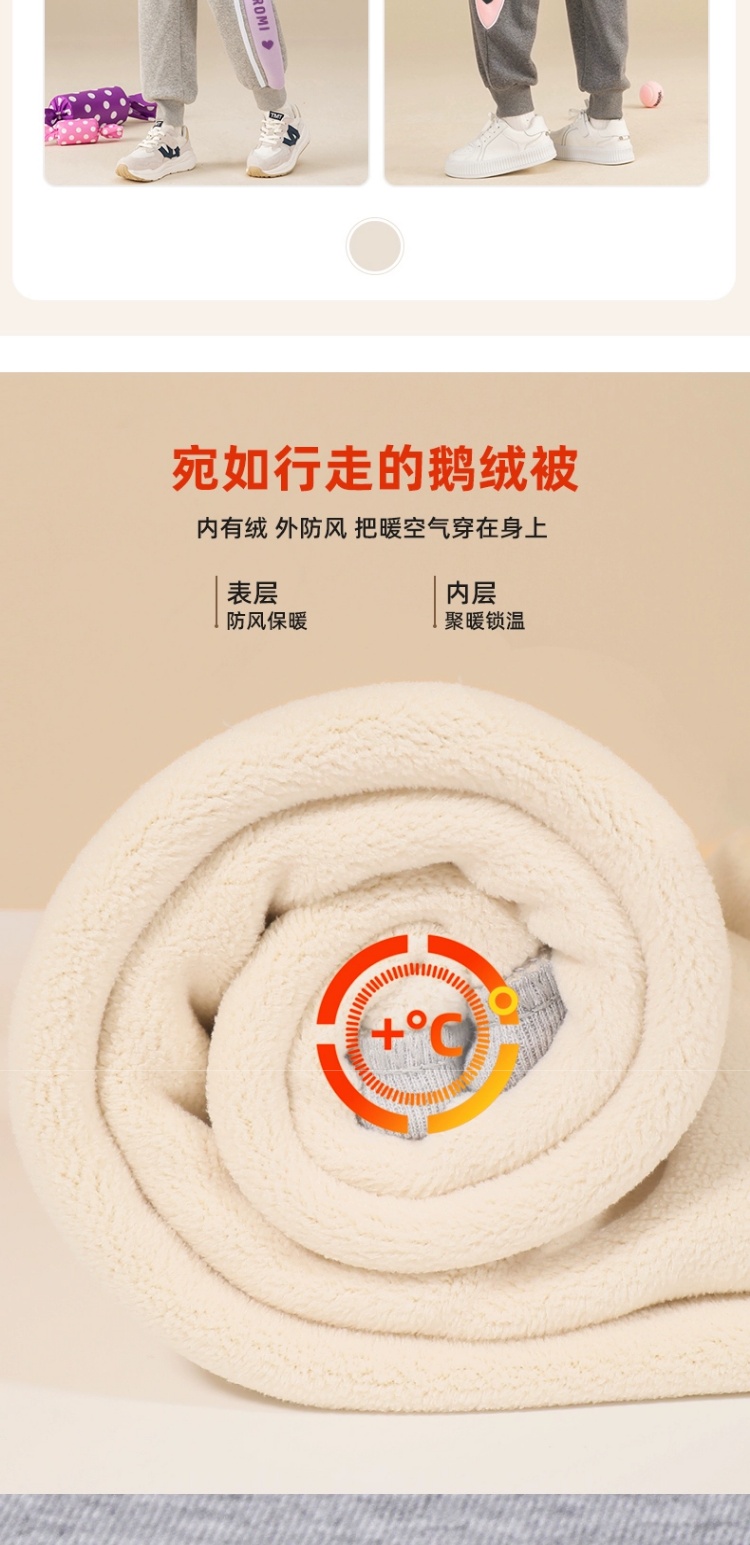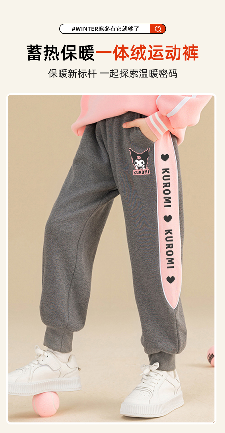 贝田2024新款冬季女童加绒裤子秋冬款儿童加厚保暖棉裤一体绒卫裤