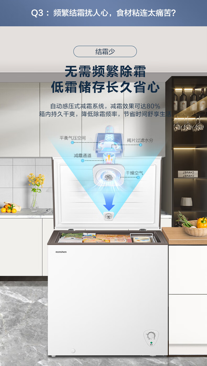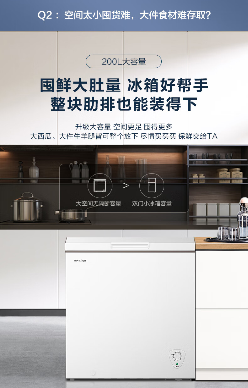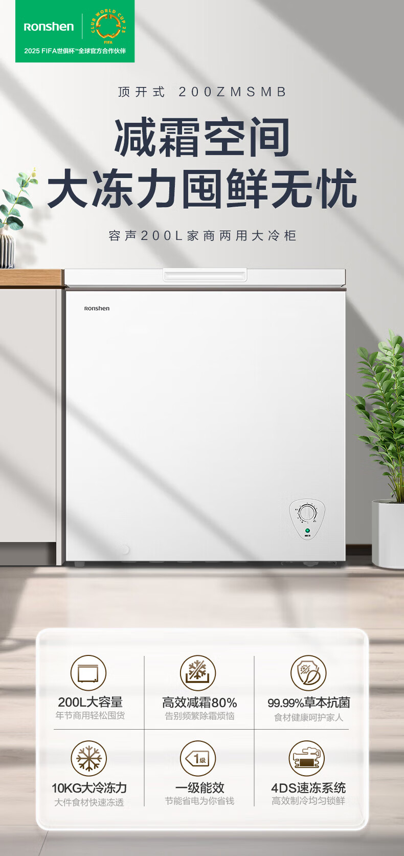 容声(Ronshen)200升 减霜80%小冰柜 一级能效 冷藏冷冻转换 顶开门冷柜BD/BC-200ZMSMB