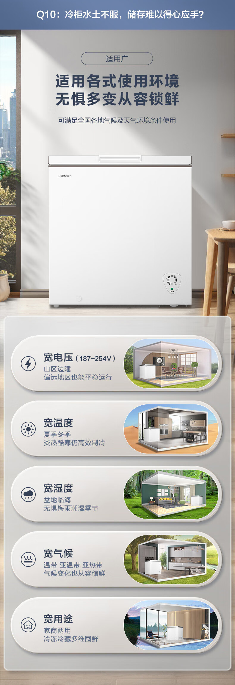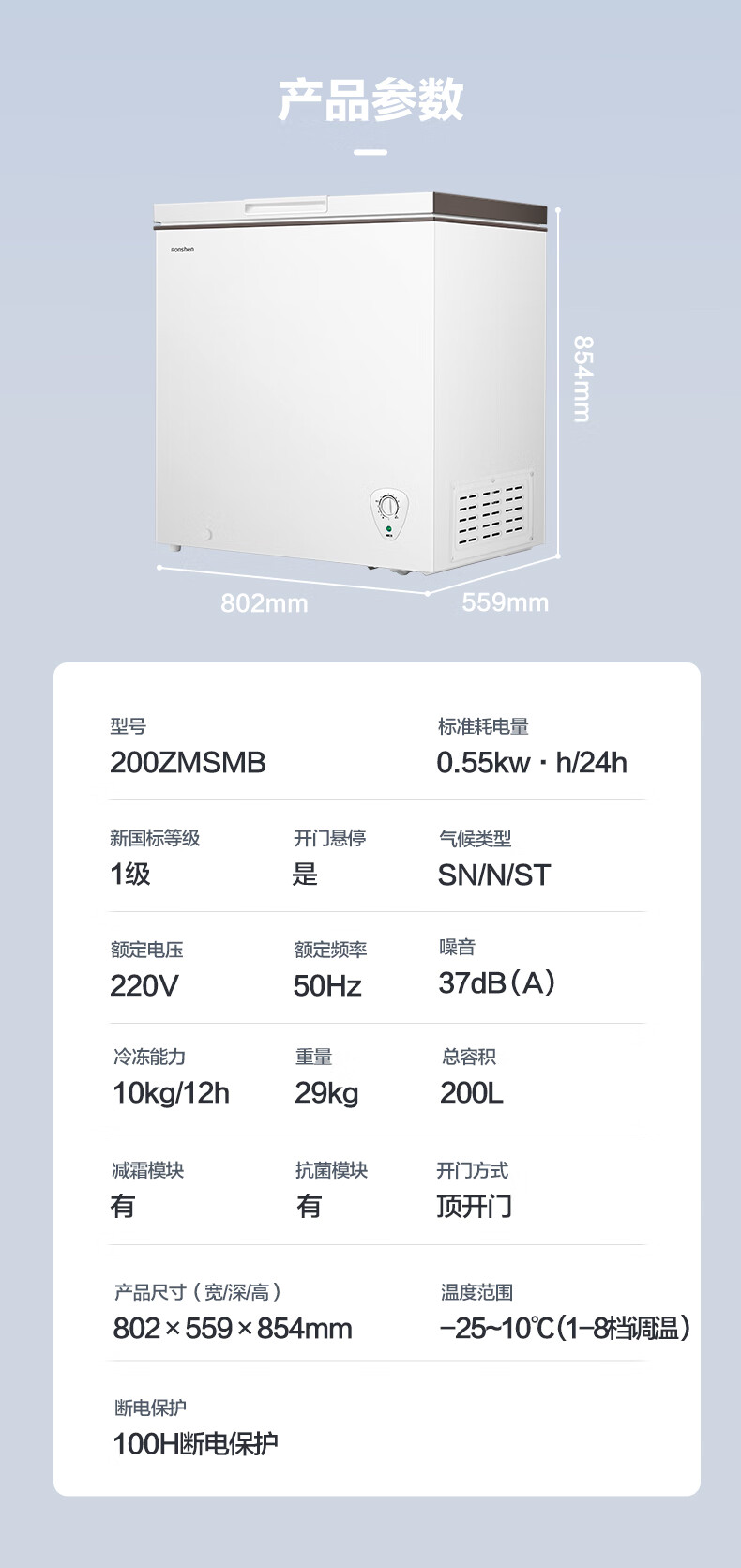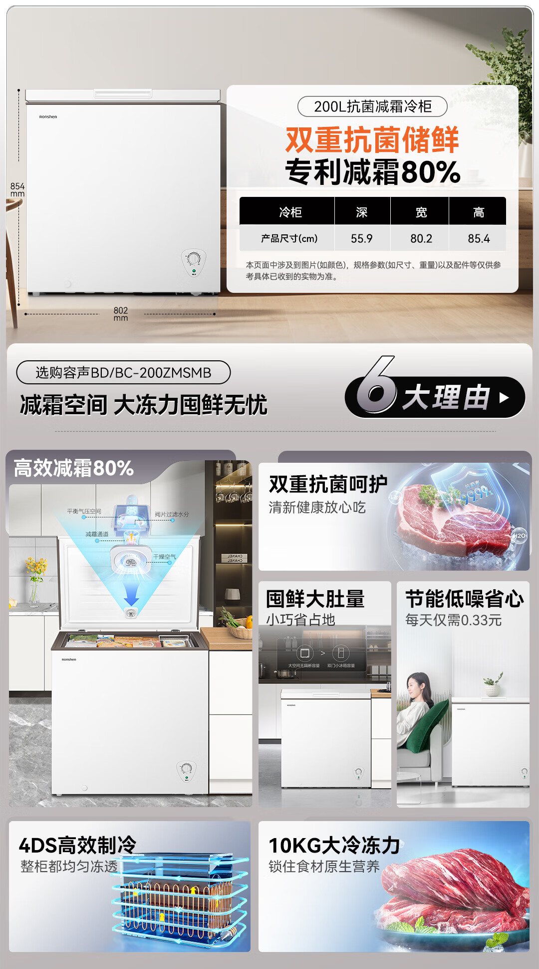 容声(Ronshen)200升 减霜80%小冰柜 一级能效 冷藏冷冻转换 顶开门冷柜BD/BC-200ZMSMB