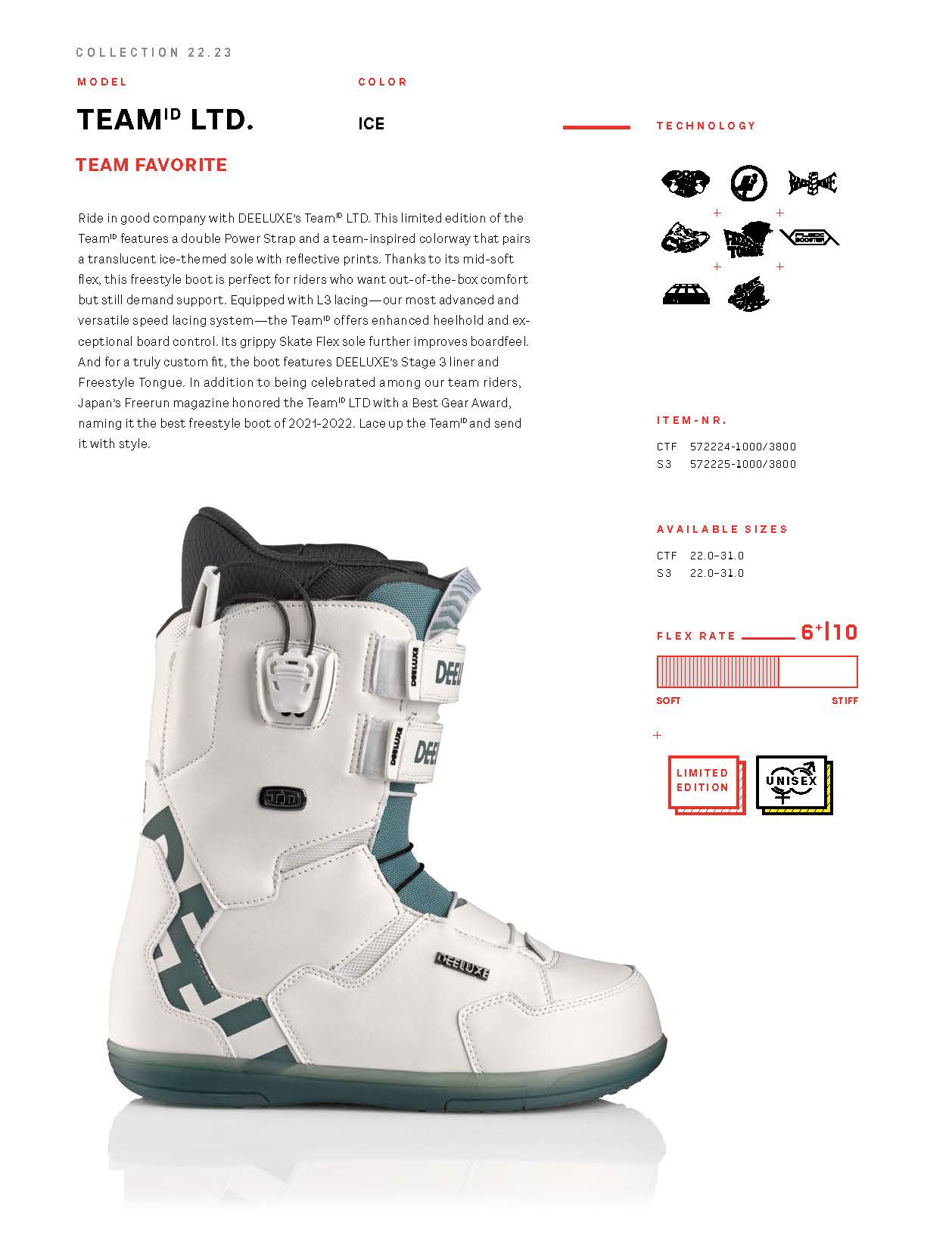 Deeluxe 22-23 TeamID LTD. 自由式系列雪鞋 男女同款