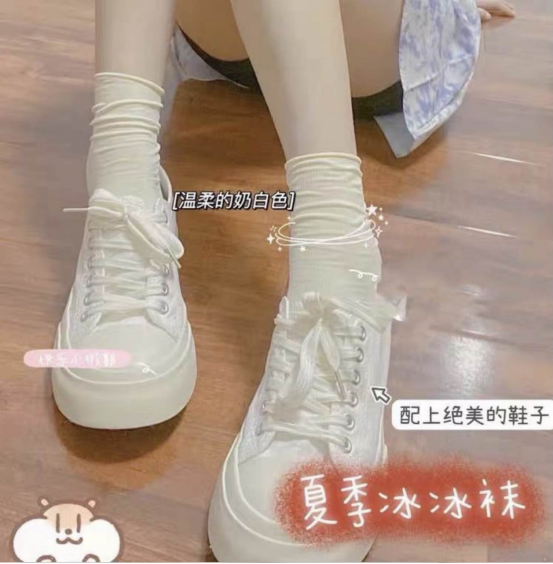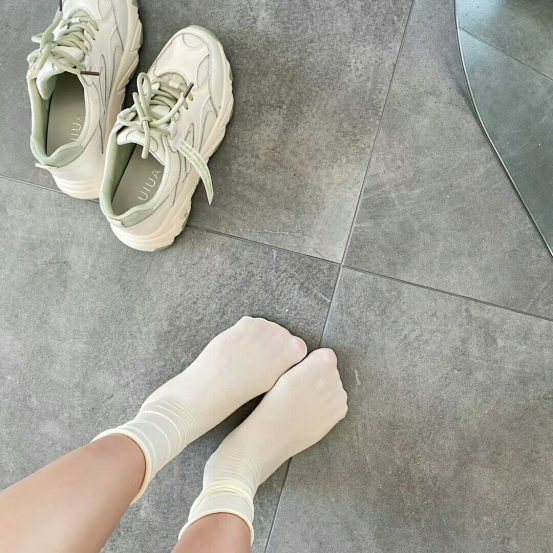夏日透气冰冰袜 上脚感非常酥服 重点是小堆堆袜的设计非常显脚踝细 跟普通袜子完全不一样噢 买一次绝对会回购的单品, 可长可短的袜子 两穿性价比超高 我还能说什么