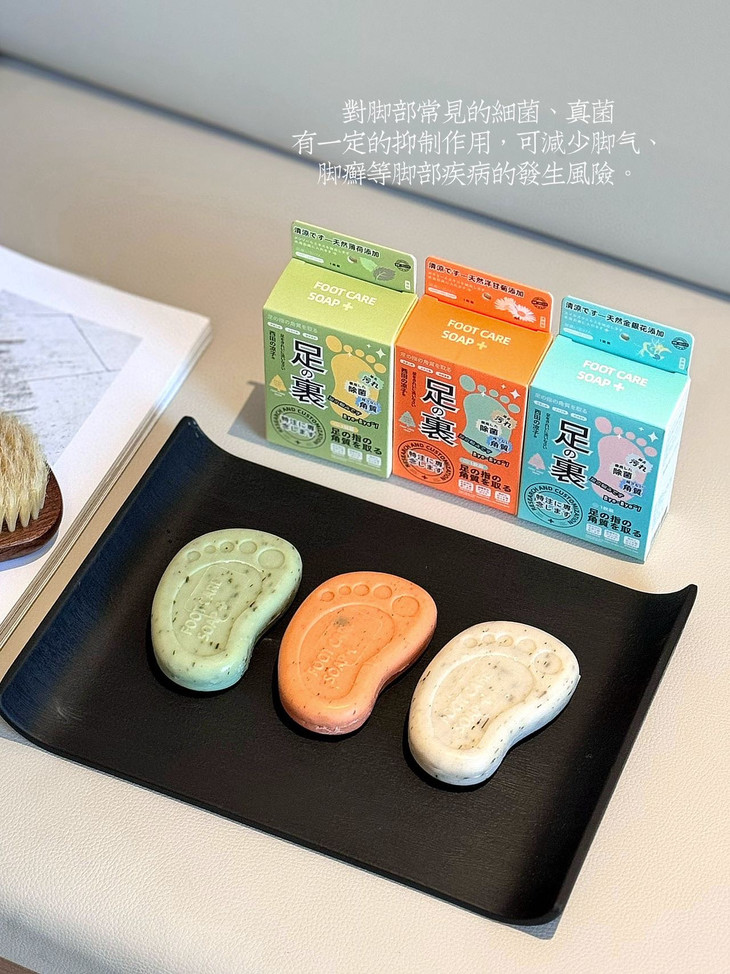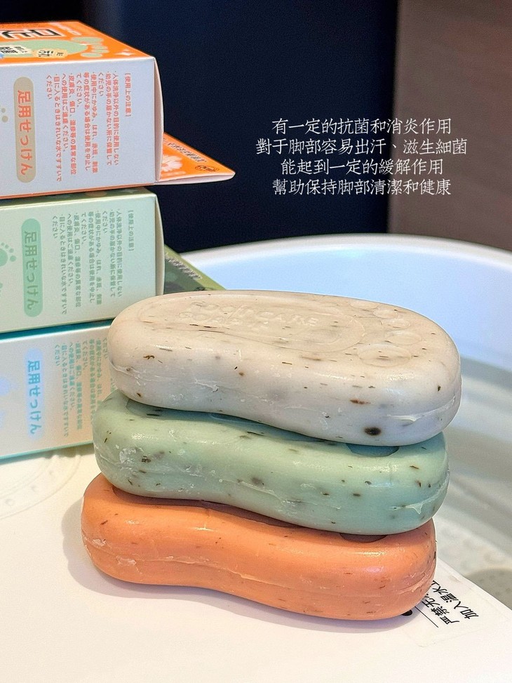 日本护理脚丫皂~全新升级 蓝色金银花(抑菌止痒舒爽皮肤) 橙色洋甘菊(止汗干爽清洁皮肤) 绿色薄荷叶(祛除异味舒体香肤) 日本宝藏药妆店铺同款~ 用来洗袜子也不错哦