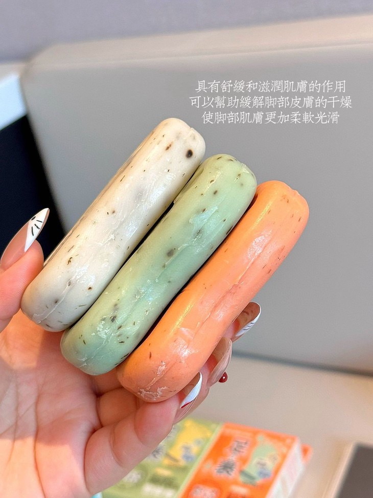 今天我给集美们带来了一款超好用的洗脚皂🧼 款式:金银花(蓝)洋甘菊(橙)薄荷(绿) 一定一定要强烈安利给大家,洗完香香的 再也不怕脱鞋尴尬😅了,我家憨憨男友 也对他爱不释手啦!一家老小都适用哟