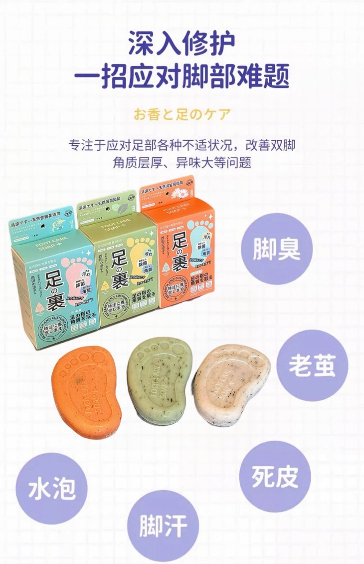专业足部护理❗️19.9💰到手3块❗️【西田の凉子·足部护理皂】奢宠日本品牌❗️醫生推荐,真的不一样,成分均萃取自天然动植物❗️ 🛑通过欧盟认证🏆不含任何有害化学物