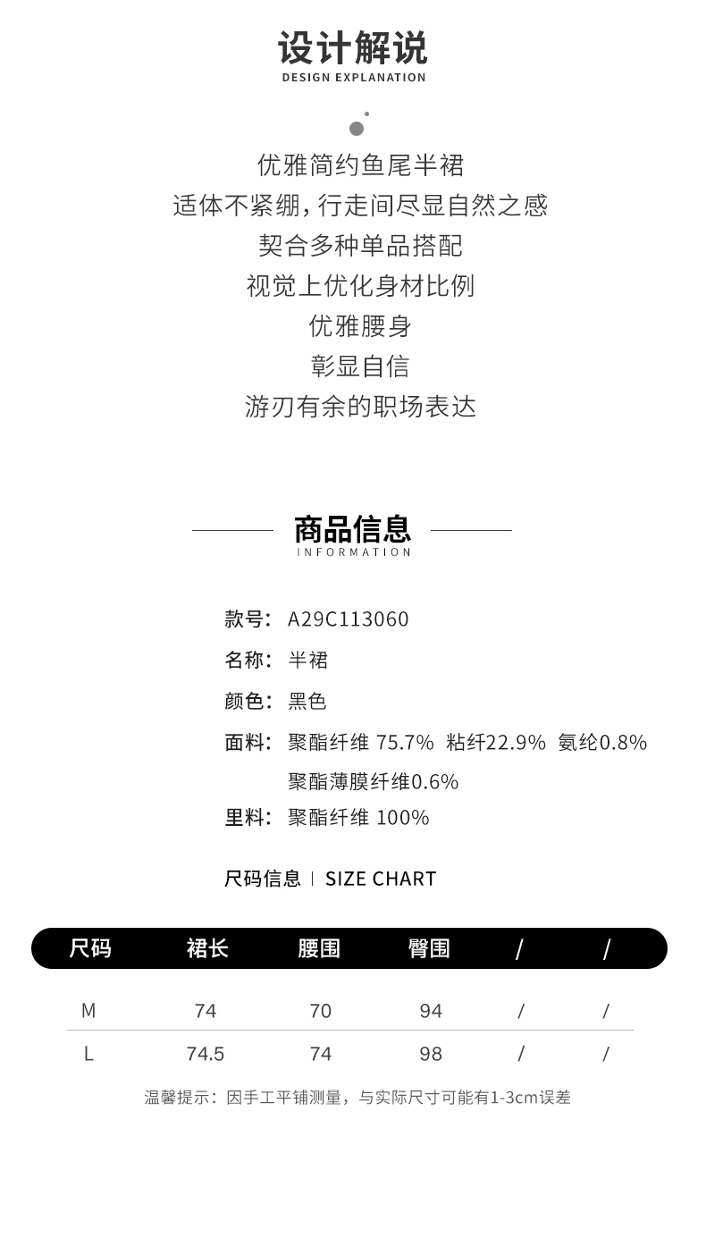 【积分兑换】阿菁娜2024春季新款简约鱼尾半裙A29C113060