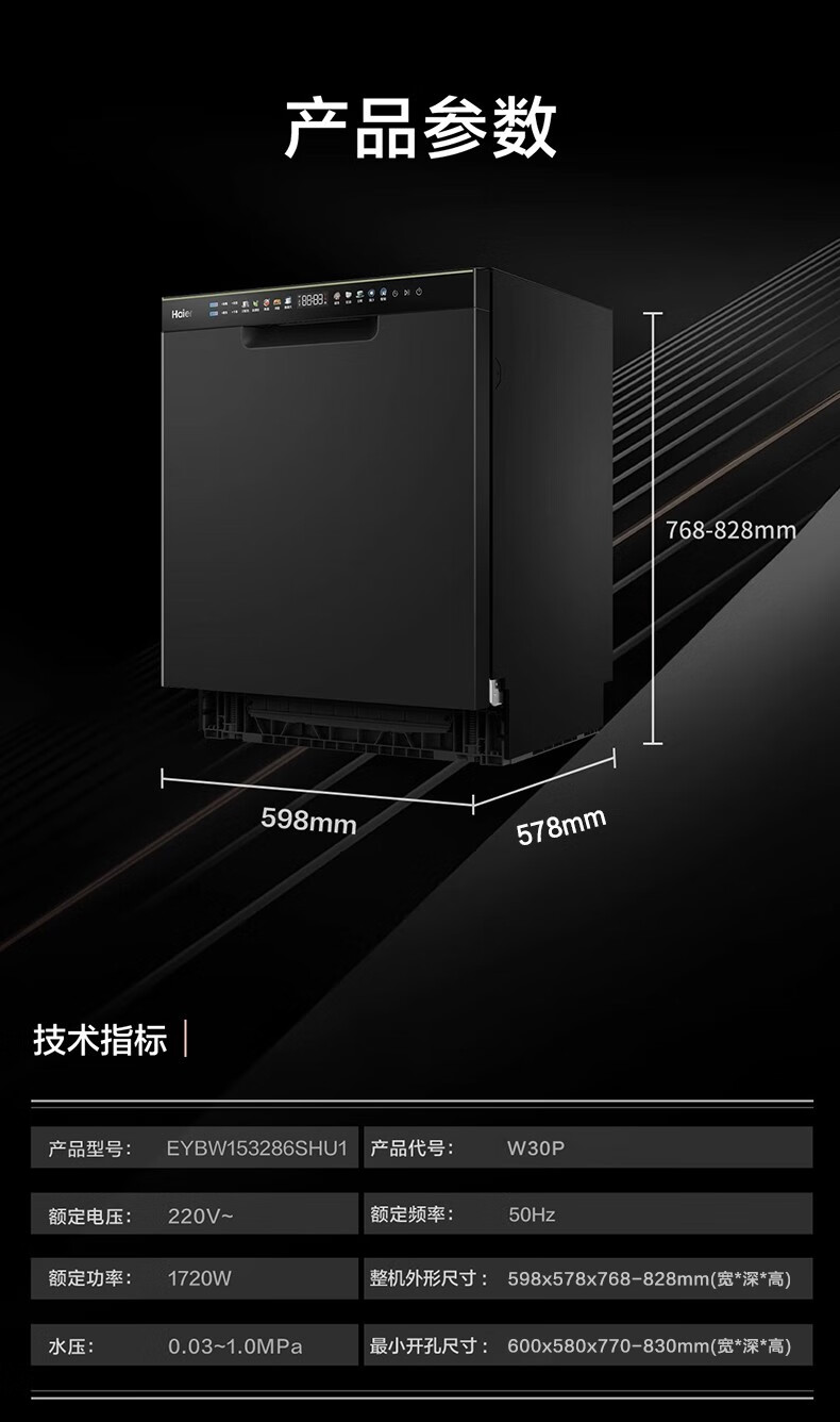 【以旧换新W30P】海尔(haier)15套嵌入式洗碗机EYBW153286SHU1
