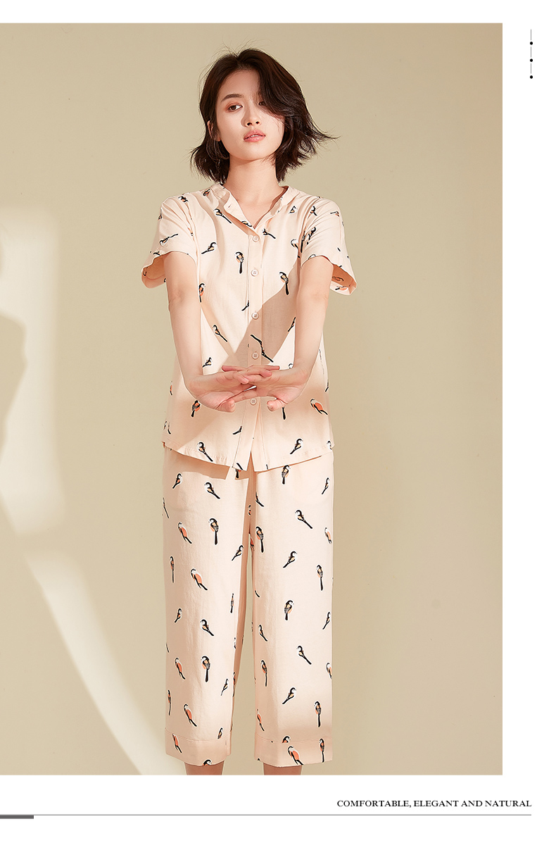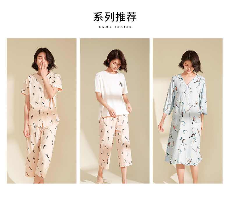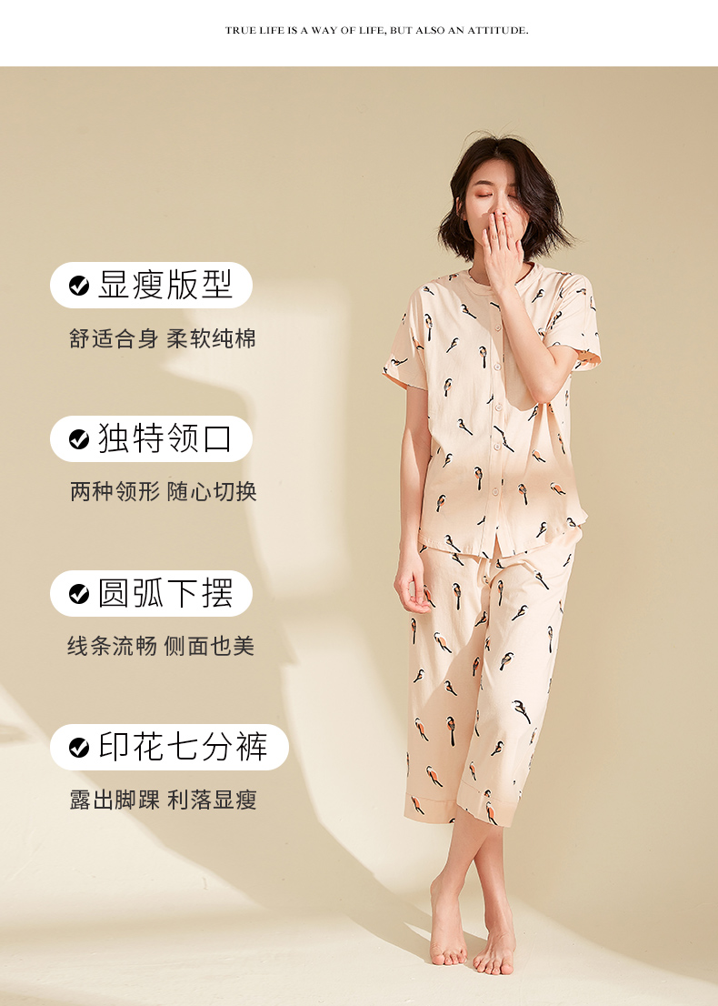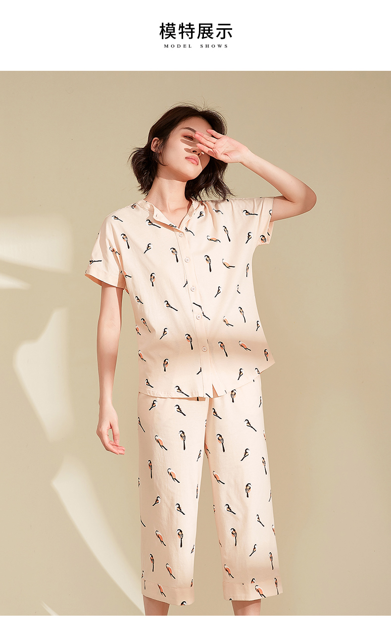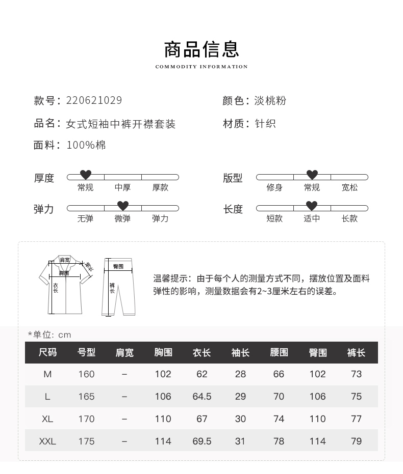 【门店同款】康妮雅睡衣家居服 女式短袖七分裤套装*淡桃粉