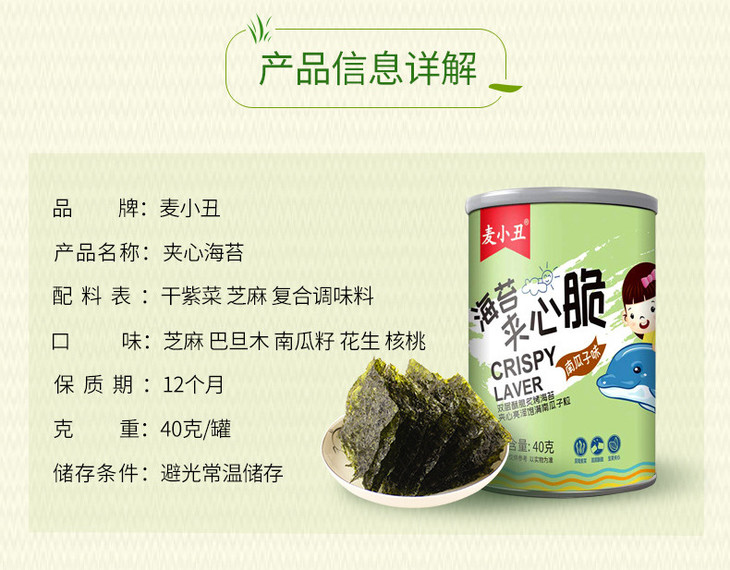 【品名】麦小丑海苔夹心脆随机混搭5罐