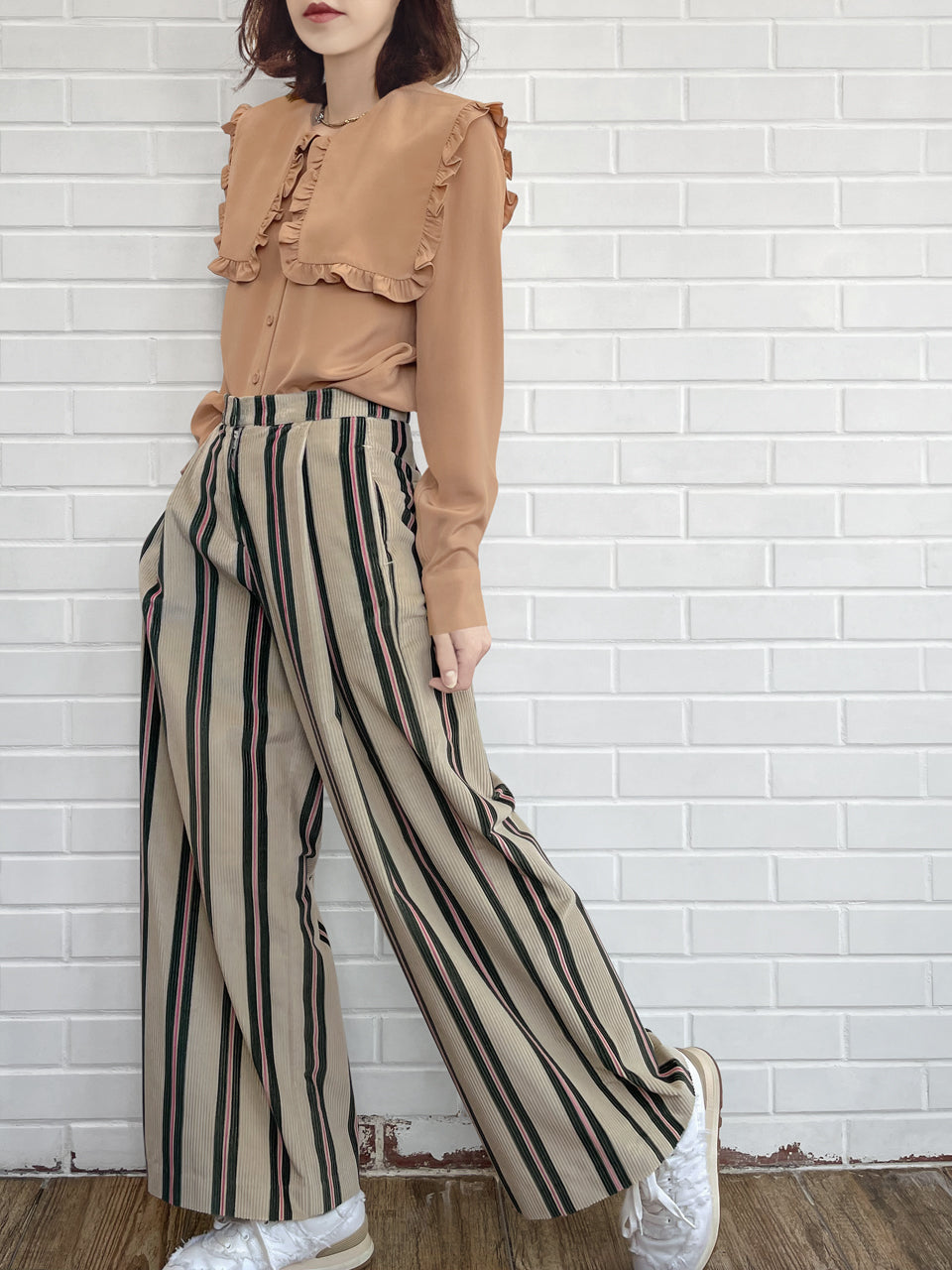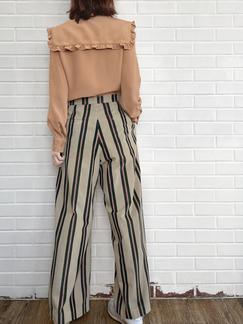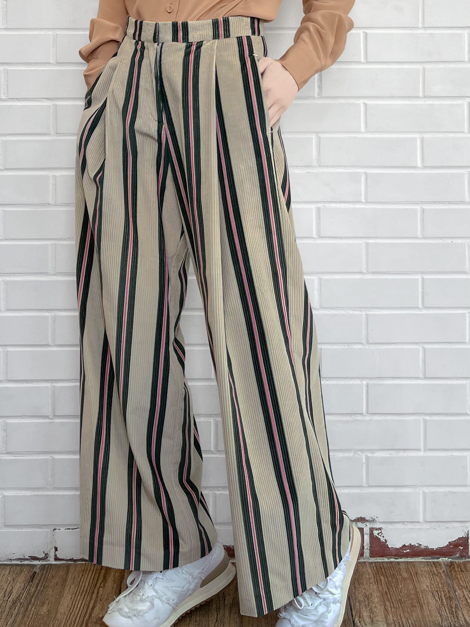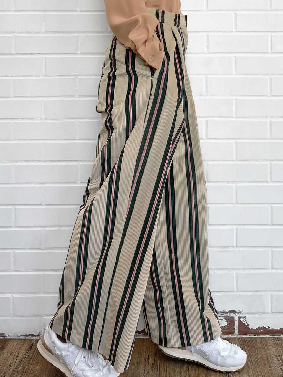 TYNVIE 经典阔腿裤-绿粉条纹