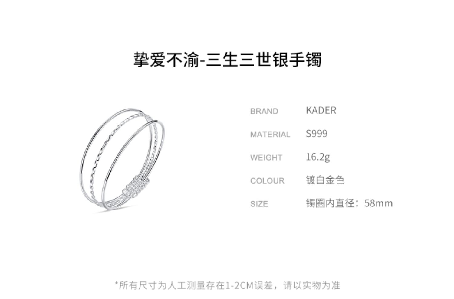 KADER卡蒂罗 三生三世 S999足银 手镯 小众设计高级感手饰礼物生日 纯银实心素圈 送礼盒款#简约大方