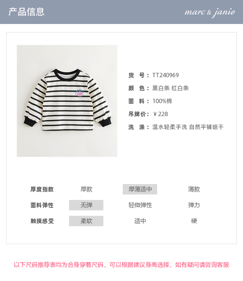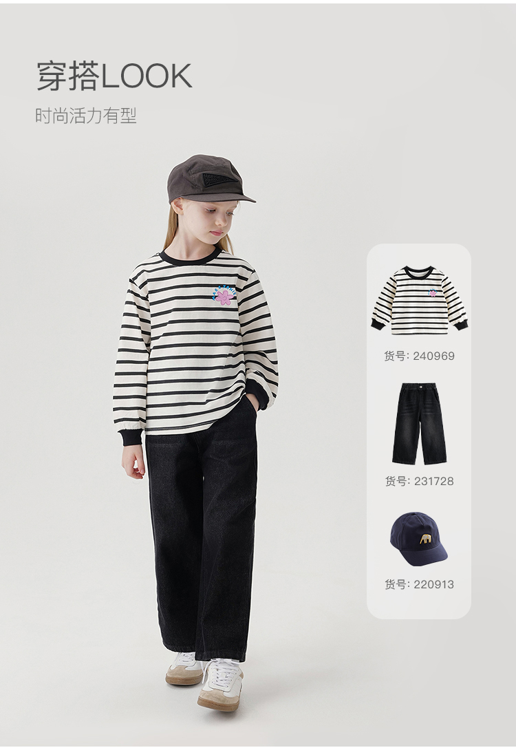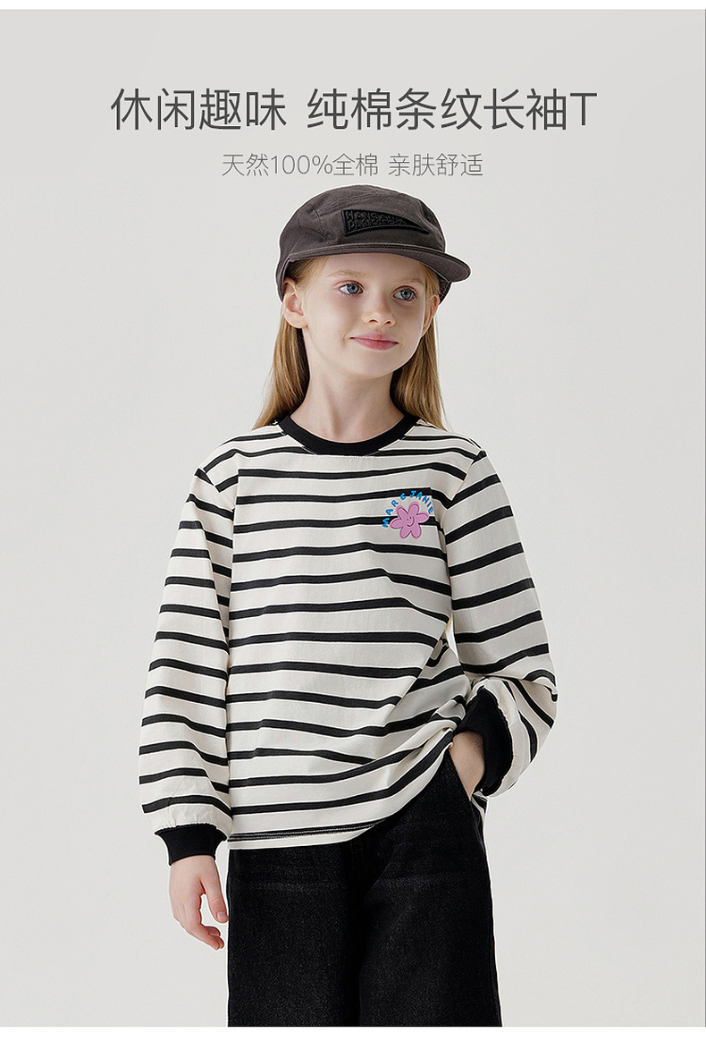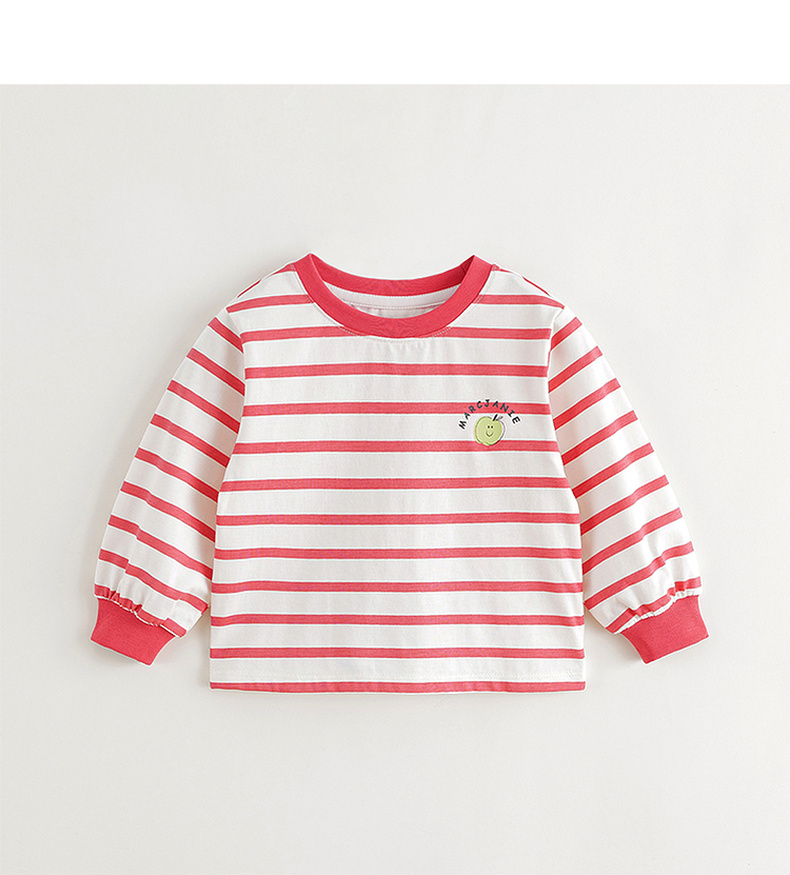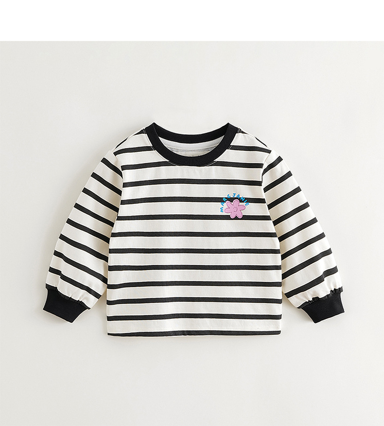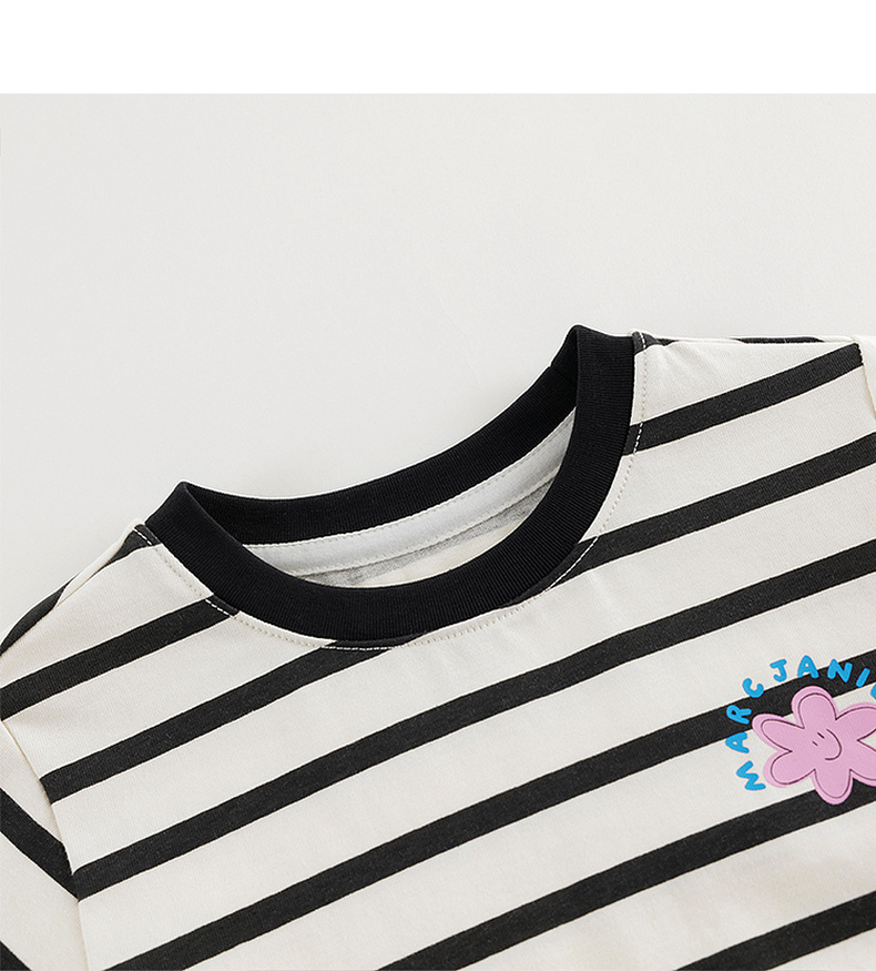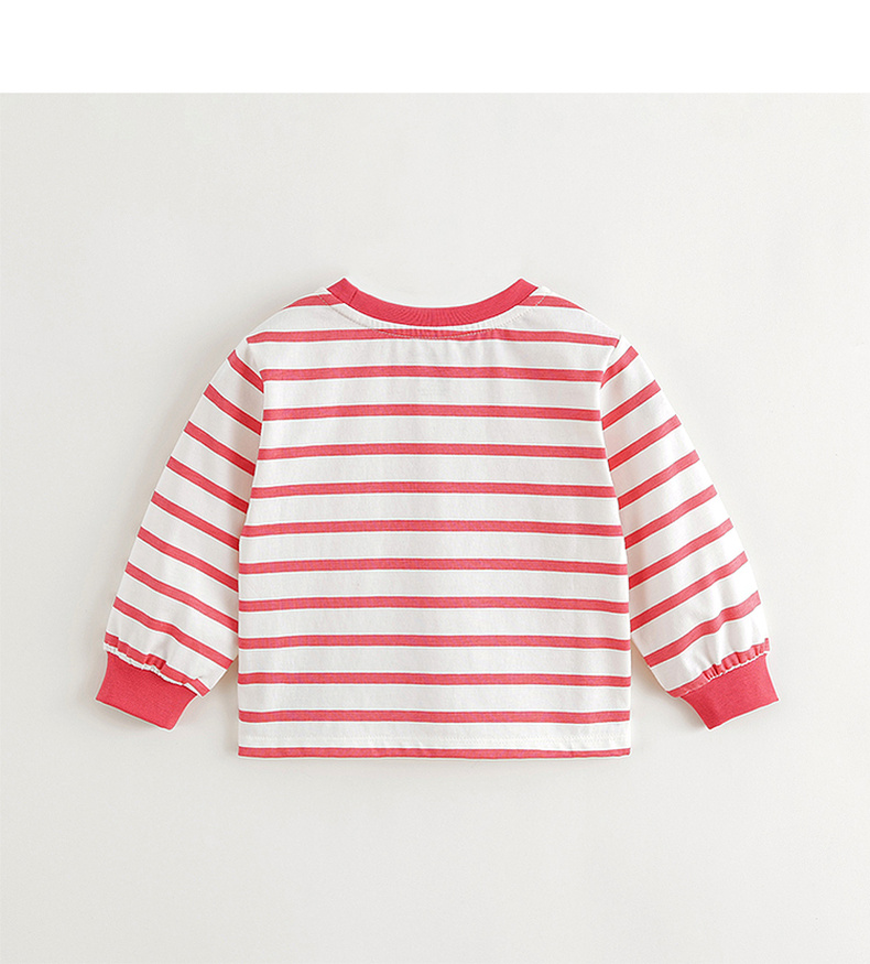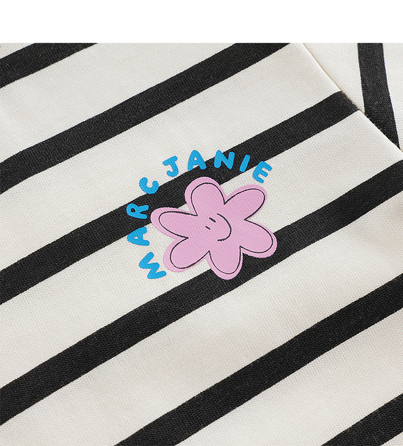 马克珍妮女童趣味印花条纹长袖T恤儿童上衣宝宝秋装新款240969