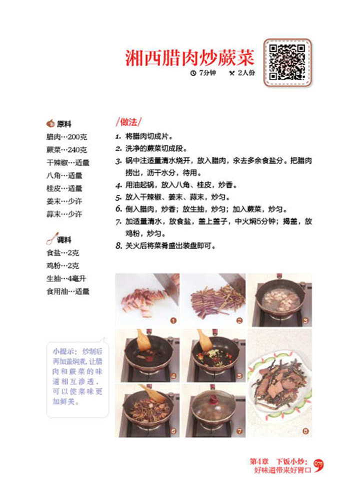 小炒菜——炒出来的好滋味 目录 章 烹饪有道:那些关于炒的秘密 002 增香提味有绝招,巧用各种调味料 003 六大炒法,炒出不同风味 006 做出可口炒菜,掌握火候是关键 008 提香五法,助你炒出好滋味 第2章10分钟美味出炉:零失败的快手小炒 010 鱼香土豆丝 012 蟹味菇炒小白菜 013 葱椒莴笋 014 蚝油丝瓜 015 丝瓜炒木耳 015 醋熘紫甘蓝 016 鱼香茄子烧四季豆 018 干煸四季豆 019 鸳鸯豆角 020 辣椒炒脆皮豆腐 020 香菜炒豆腐 021 酱香菜花豆角 022 莲藕炒秋葵 024 糖醋藕片 025 腊八豆炒空心菜 026 蒜蓉空心菜 027 油淋菠菜 029 地三鲜 030 酸辣黄瓜条 031 清炒甜豆 032 酱炒西葫芦 033 东北酱茄子 033 茄辣西 034 苦瓜炒豆腐干 035 洋葱木耳炒鸡蛋 036 西蓝花炒火腿 036 炒西蓝花 037 胡萝卜炒香菇片 038 豌豆炒玉米 040 彩椒山药炒玉米 041 彩椒炒芦笋 042 芦笋炒百合 042 豉香佛手瓜 第3章 黄金搭档:荤素搭配的营养小炒 044 培根炒菠菜 046 木耳黄菜花炒肉丝 047 秋葵炒肉片 048 蒜薹木耳炒肉丝 049 西芹炒肉丝 050 刀豆炒腊肠 052 茶树菇炒五花肉 053 青菜豆腐炒肉末 054 西蓝花炒鸡脆骨 055 双椒鸡丝 056 胡萝卜豌豆炒鸭丁 058 韭菜黄豆炒牛肉 059 菠萝蜜炒牛肉 060 牛肉炒菠菜 061 双椒爆牛肉 062 节瓜炒花甲 064 苦瓜爆鱿鱼 065 鲍丁小炒 066 扇贝肉炒芦笋 067 韭黄炒腰花 068 雪里蕻炒鸭胗 069 彩椒炒猪腰 070 肚条烧韭菜花 第4章 下饭小炒:好味道带来好胃口 072 草菇炒牛肉 074 荷兰豆炒牛肉 075 榛蘑辣爆鸡 076 歌乐山辣子鸡 077 麻辣干炒鸡 078 湘西腊肉炒蕨菜 080 熏腊肉炒杏鲍菇 081 萝卜干腊肠 082 芝麻辣味炒排骨 083 腊肠脆藕 084 香芹炒腊鸭 086 永州血鸭 087 鱼香马蹄鸭肝片 088 榨菜炒鸭胗 089 陈皮炒鸡蛋 089 火腿炒鸡蛋 090 双椒炒肉片 092 豆豉刀豆肉片 093 蚂蚁上树 094 小炒猪皮 095 枸杞滑熘肉片 096 翠衣炒鳝片 098 茶树菇炒鳝丝 099 姜丝炒墨鱼须 100 四宝鳕鱼丁 101 木耳炒鱼片 102 鲜鱿鱼炒金针菇 104 辣椒炒螺片 105 杏仁西芹炒虾仁 106 韭菜花炒河虾 107 鲜虾炒白菜 108 豆瓣酱炒花蟹 109 桂圆蟹块 110 辣炒海瓜子 110 香辣小海螺 第5章 上得厅堂:体面的宴客炒菜 112 韭菜花炒腊鸭腿 114 酸豆角炒鸭肉 115 香菜炒鸡丝 116 花椒鸡 117 麻辣鸡丝 117 酱爆鸡心 118 胡萝卜炒牛肉 120 山楂菠萝炒牛肉 121 西芹炒牛肚 122 木耳炒百叶 123 葱香猪耳朵 124 爆炒卤肥肠 126 香菜炒羊肉 127 尖椒炒羊肚 128 韭菜炒羊肝 129 姜葱炒花螺 130 九层塔炒海瓜子 132 炒花蟹 133 酱爆海瓜子 134 酱爆血蛤 135 姜葱炒蛏子 136 泰式肉末炒蛤蜊 138 桂圆炒海参 139 陈皮炒河虾 140 沙茶炒皮皮虾 141 椒盐沙丁鱼 141 椒盐银鱼 142 咸菜草鱼 144 菠萝炒鱼片 145 山楂鱼块 146 黑蒜烧墨鱼 147 芝麻带鱼 148 青椒兜鱼柳 148 小鱼花生 第6章 好菜知时节:四季顺时小炒 150 韭菜花酸豆角炒鸭胗 152 韭菜花炒虾仁 153 韭菜炒牛肉 154 马蹄玉米炒核桃 155 芹菜炒香菇 156 春笋叉烧肉炒蛋 157 春笋红烧肉 158 鲜笋炒生鱼片 159 茼蒿炒豆干 160 莴笋炒瘦肉 161 虾皮炒茼蒿 162 鱿鱼须炒四季豆 164 响油鳝丝 165 空心菜炒鸭肠 166 彩椒黄瓜炒鸭肉 167 滑炒鸭丝 167 虾皮炒冬瓜 169 黑蒜炒苦瓜 170 番茄炒山药 171 茄汁生鱼片 172 蛤蜊炒毛豆 172 蛤蜊炒丝瓜 173 圣女果芦笋鸡柳 174 辣炒乌鸡 176 双菇烩鸡片 177 猪肝炒菜花 178 陈皮炒猪肝 179 西芹炒肚条 181 西芹百合炒腰豆 182 西芹藕丁炒姬松茸 183 辣子猪肺 184 玉米炒虾仁 185 鲜虾炒白菜 186 酱爆大葱羊肉 188 金针菇炒羊肉卷 189 杨桃炒牛肉 190 韭菜炒鹌鹑蛋 191 鸡丝白灵菇 191 蜜橘鸡丁 193 胡萝卜片小炒肉 194 胡萝卜炒鸡肝 195 香菜炒猪腰 196 杏鲍菇炒腊肉 第7章饭菜一锅:主食类小炒 198 火龙果炒饭 200 XO酱广州炒饭 201 巴西炒饭 202 豆豉鸡肉炒饭 203 猪肝炒饭 203 叉烧炒饭 204 孜然牛肉炒饭 206 香甜玉米蛋炒饭 207 泡菜炒饭 208 金枪鱼炒饭 208 羊肉炒饭 209 土豆炒饭 210 新疆炒米粉 212 台湾炒米粉 213 腊肉炒年糕 214 牛肉粒炒河粉 215 泰式炒米粉 216 干煸炒面 218 火腿炒面 219 姜汁香菇炒面 220 豆角鸡蛋炒面 220 番茄鸡蛋炒面 221 三丝培根炒面 222 腊肠炒面 224 秘制炒面 225 蔬菜炒面 226 双酱汁炒面 227 丝瓜刀削面 227 咖喱炒面 228 肉丝小炒面 230 油菜素炒面 231 虾仁胡萝卜炒面 232 洋葱猪肝炒面 |
