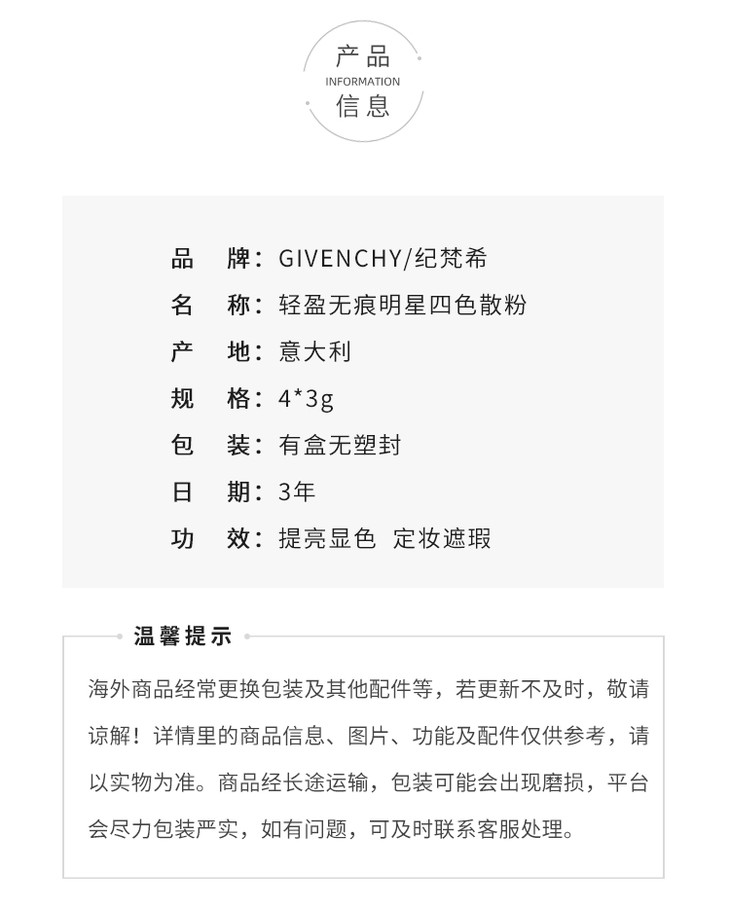纪梵希轻盈无痕明星四色散粉四宫格幻彩蜜粉控油持久