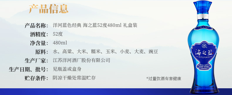 洋河海之蓝52度480ml 6瓶/箱 2箱起购 下单前请认真阅读详情页【预售241118发货】
