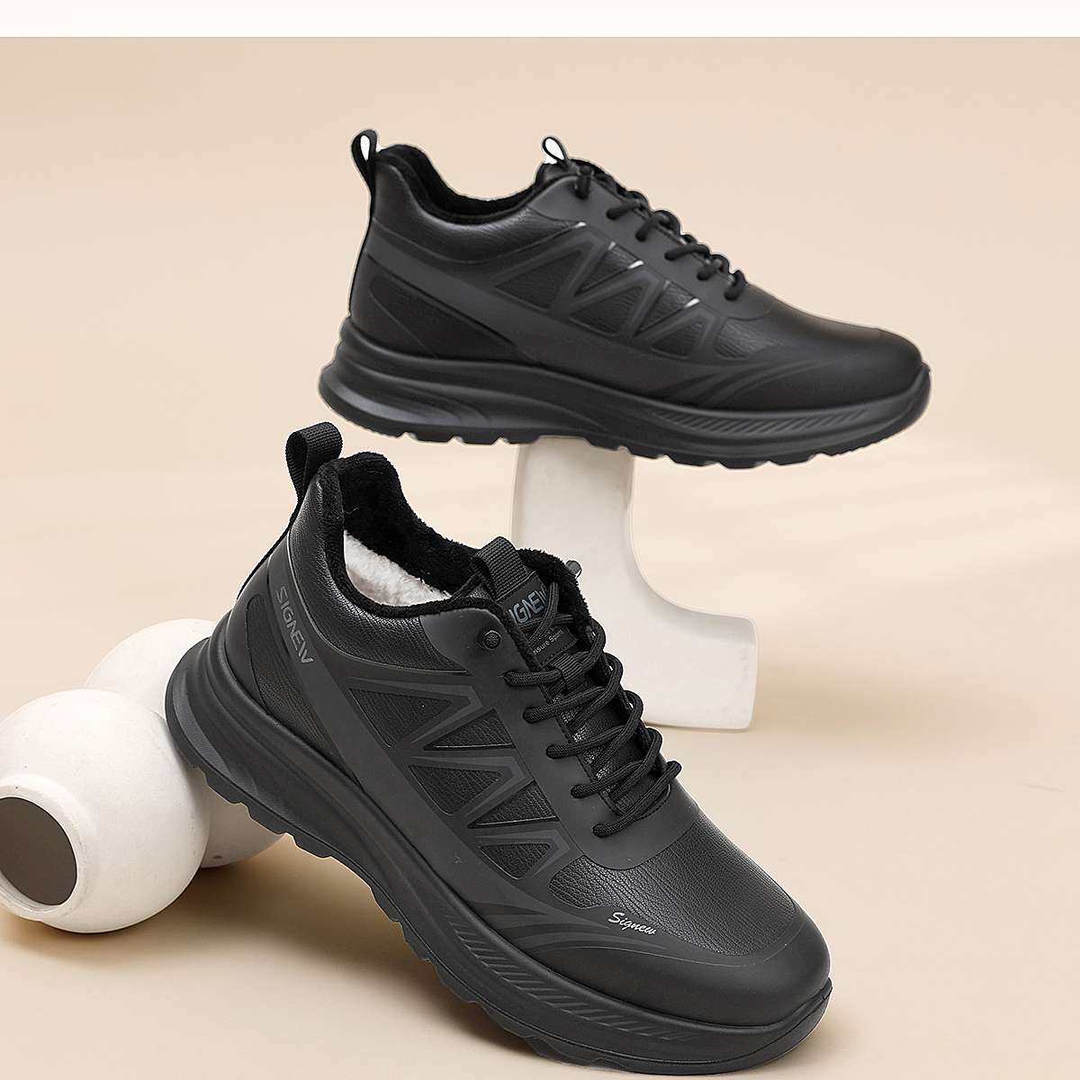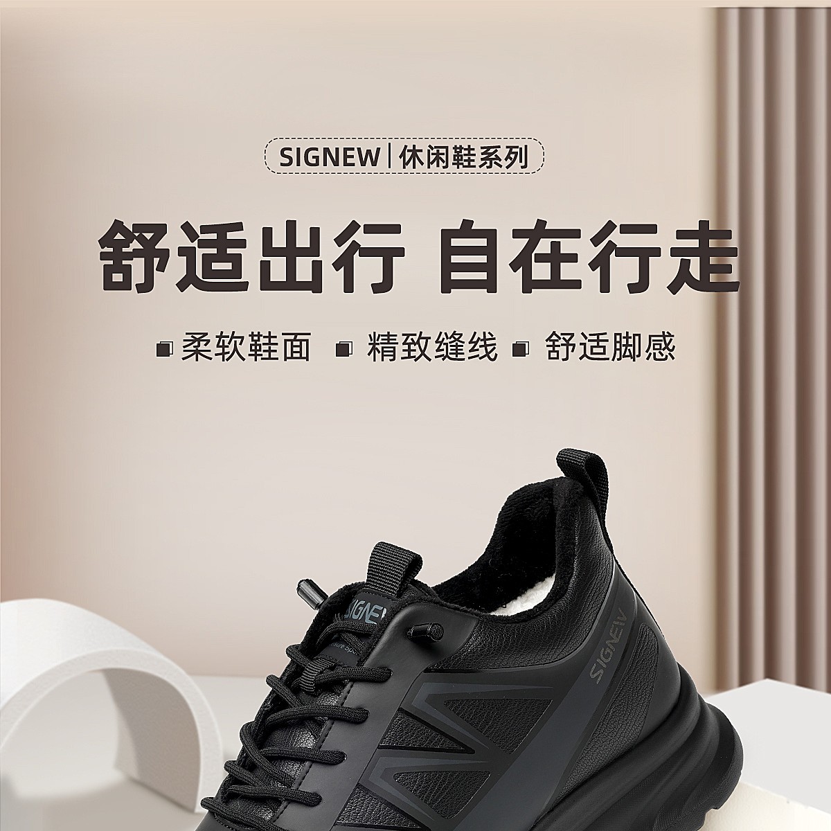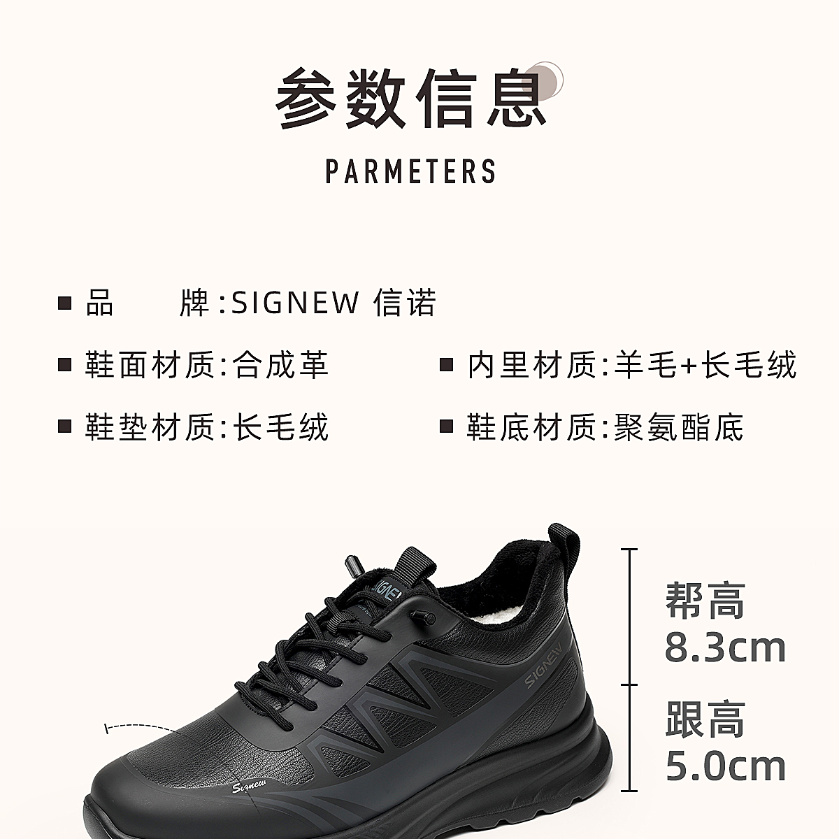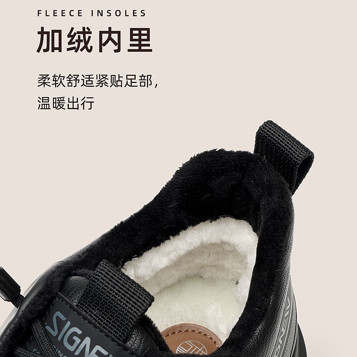 信诺男士休闲运动鞋保暖羊毛棉鞋软底舒适爸爸鞋皮鞋2025冬季新款N5M115-245Y