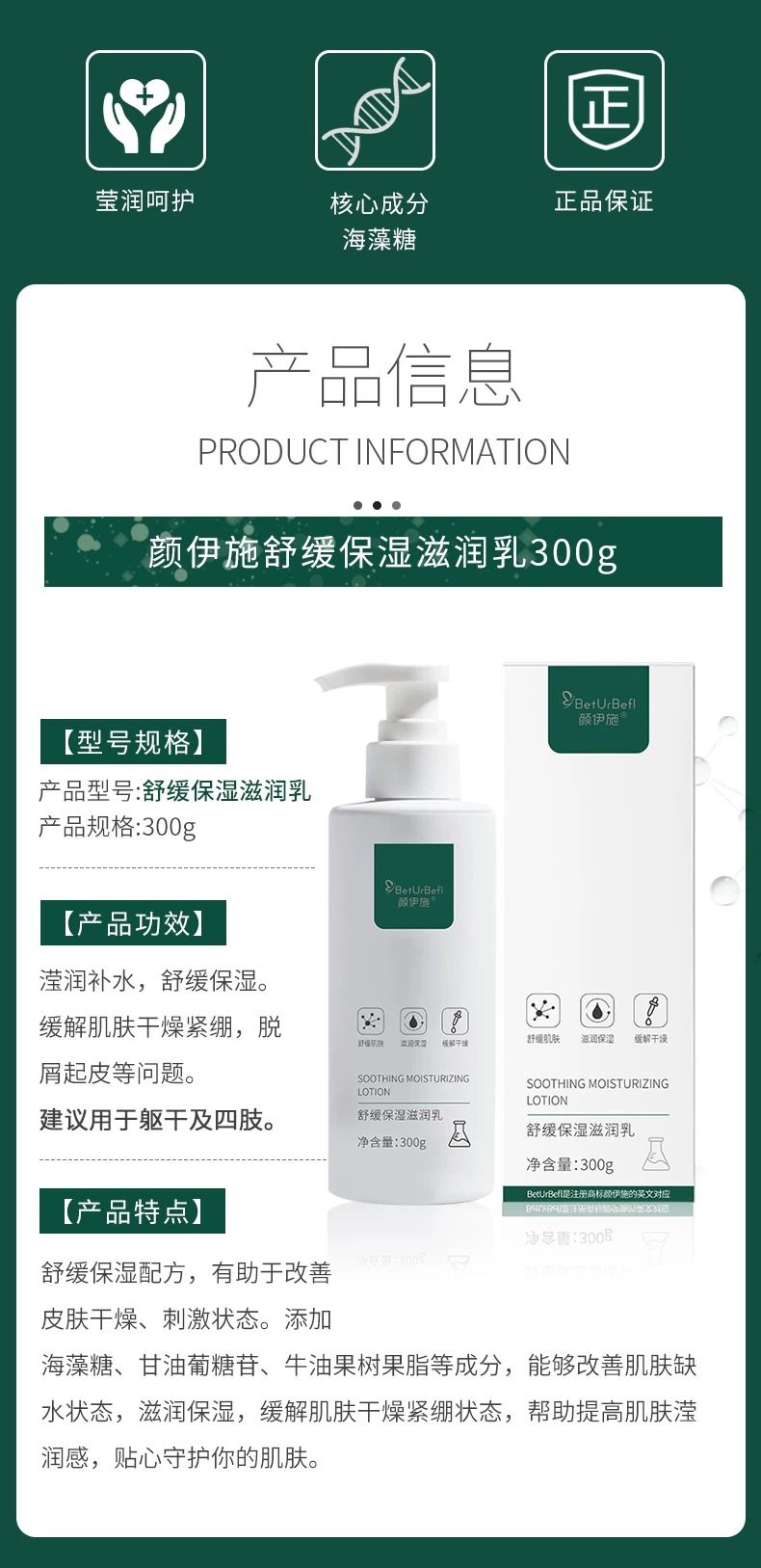 颜伊施舒缓保湿滋润乳300g 长效保湿 舒缓不适