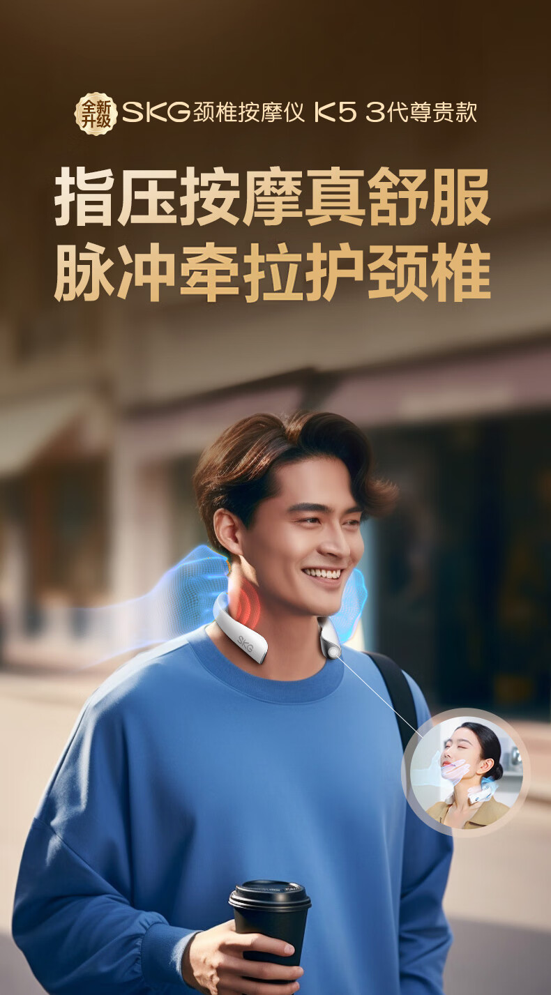 SKG 颈部按摩器 K5-3 尊贵款 颈椎颈部按摩仪脖子肩颈护颈仪热敷脉冲口袋按摩仪送男女朋友生日礼品礼物