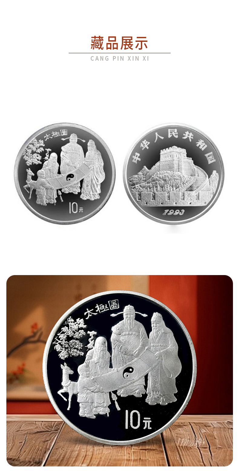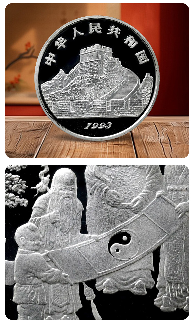 【老精稀】1993年福禄寿太极图1盎司纪念银币