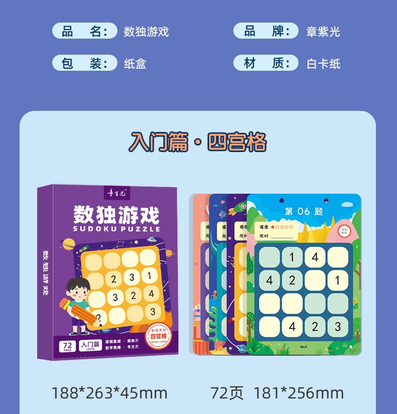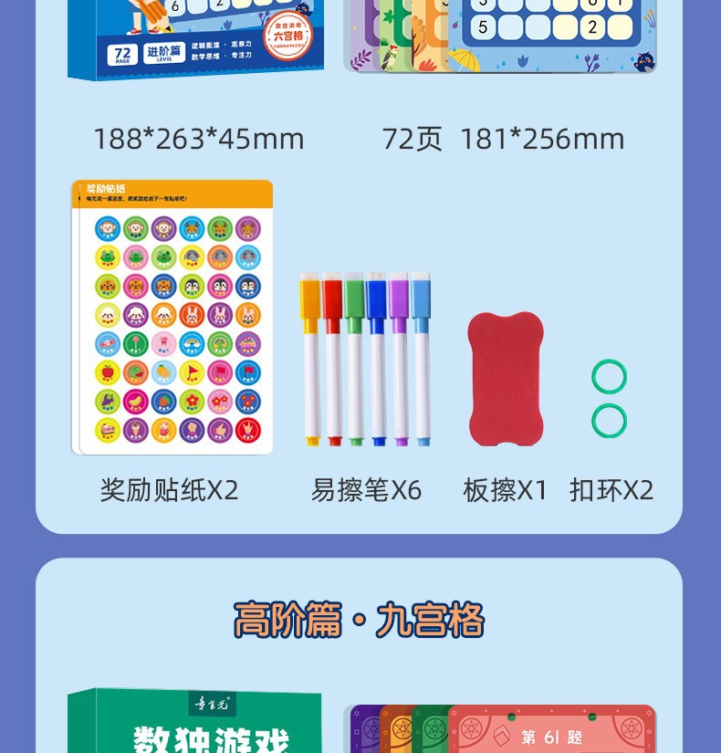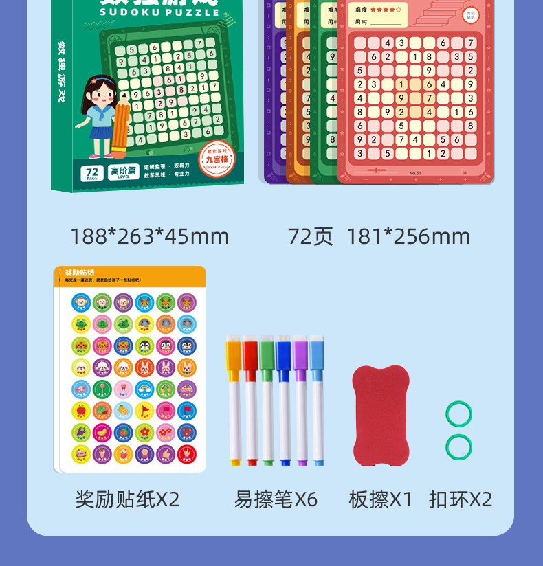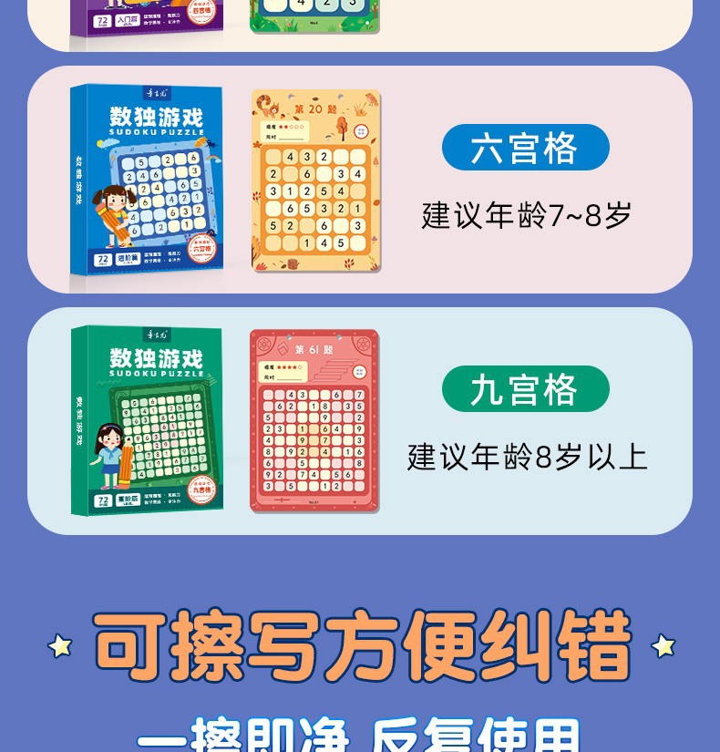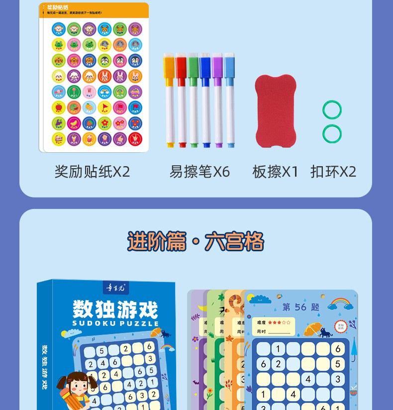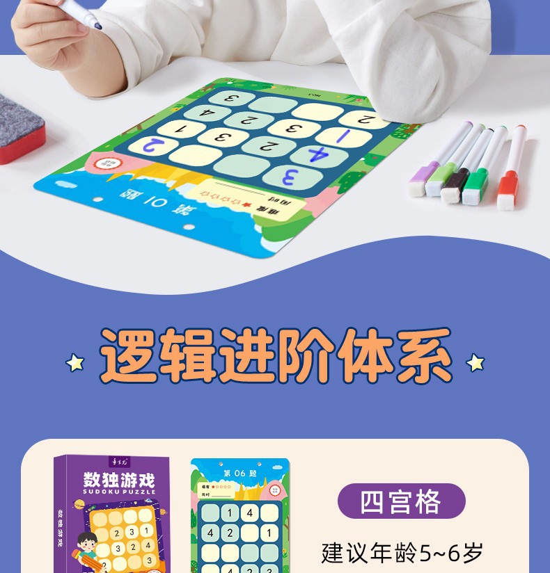 可反复擦写!【从小给大脑做运动 提升智力】数独儿童入门幼儿园阶梯训练四六九宫格数学思维玩具学生益智
