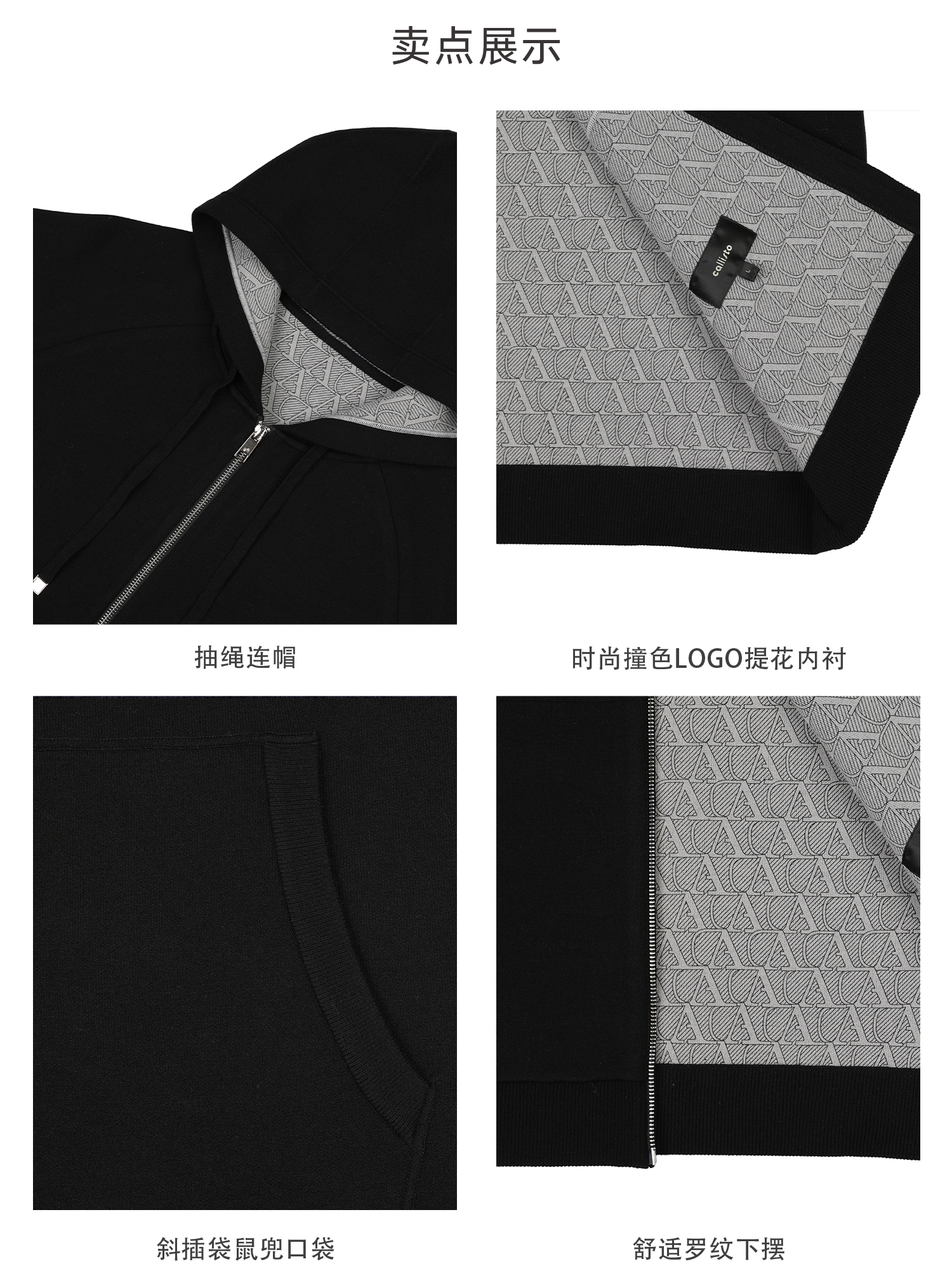 callisto黑色抽绳连帽开衫