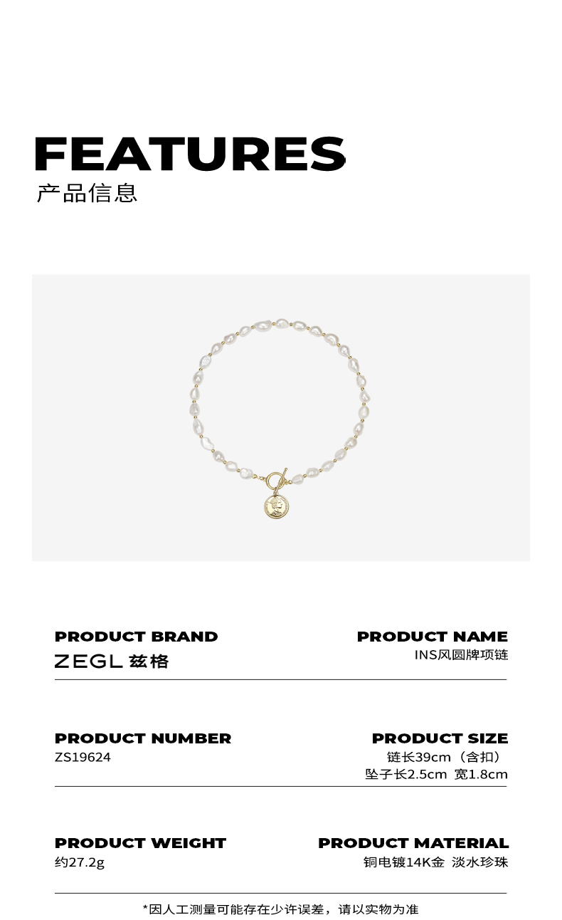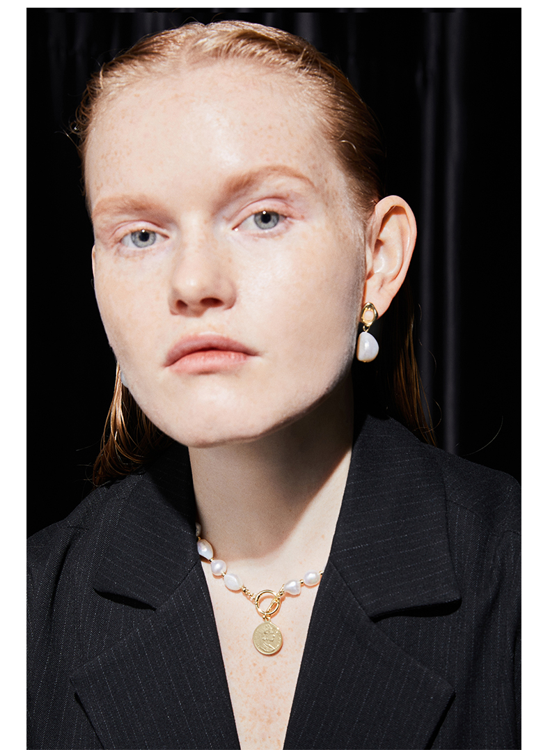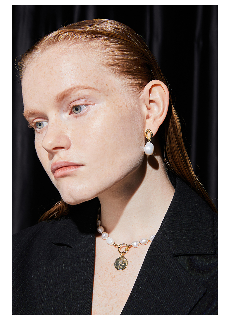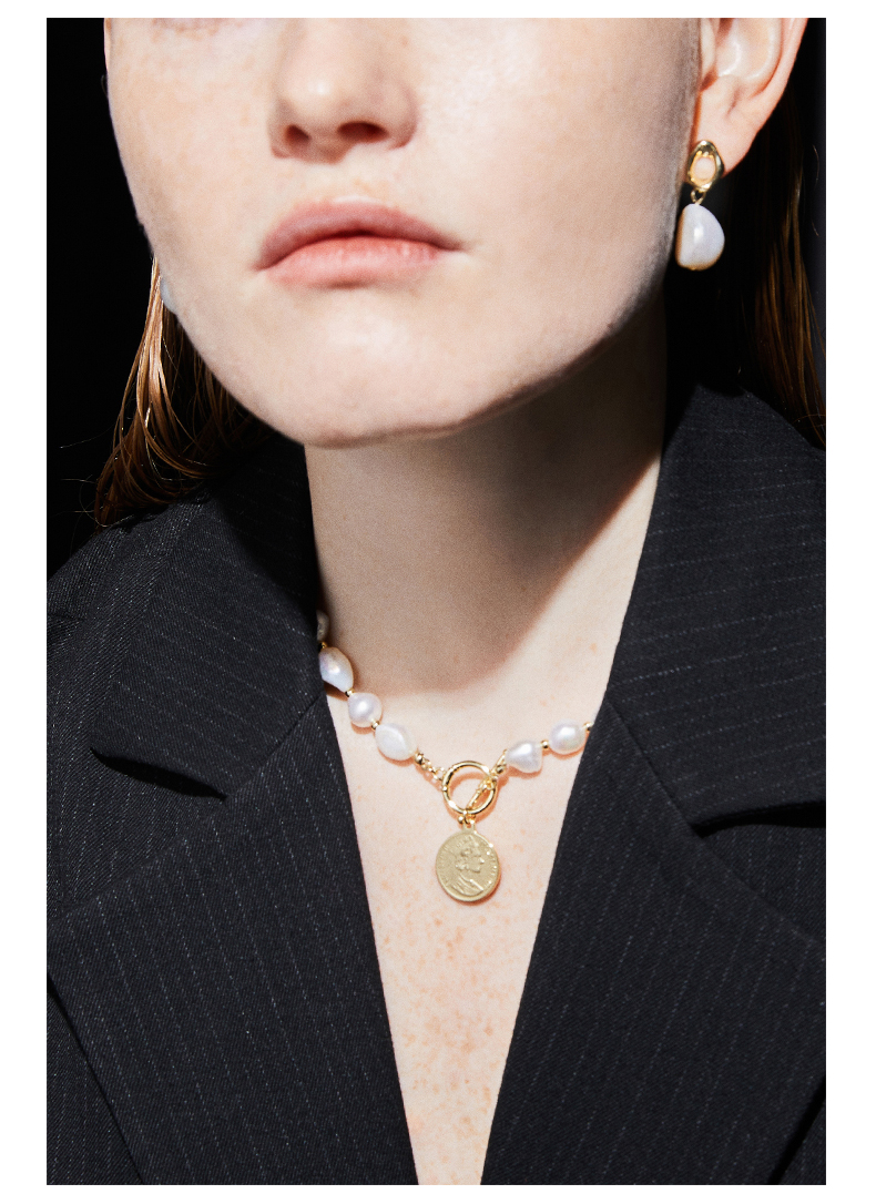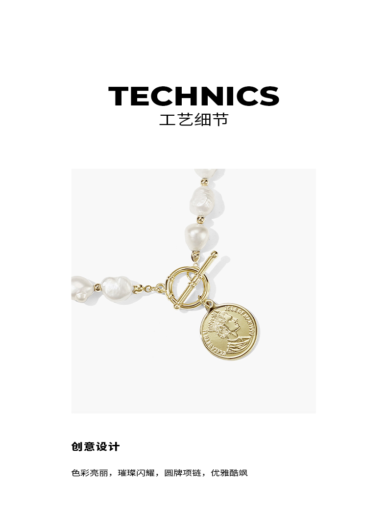 ZEGL巴洛克淡水珍珠项链女轻奢小众复古硬币人像吊坠短款锁骨颈链
