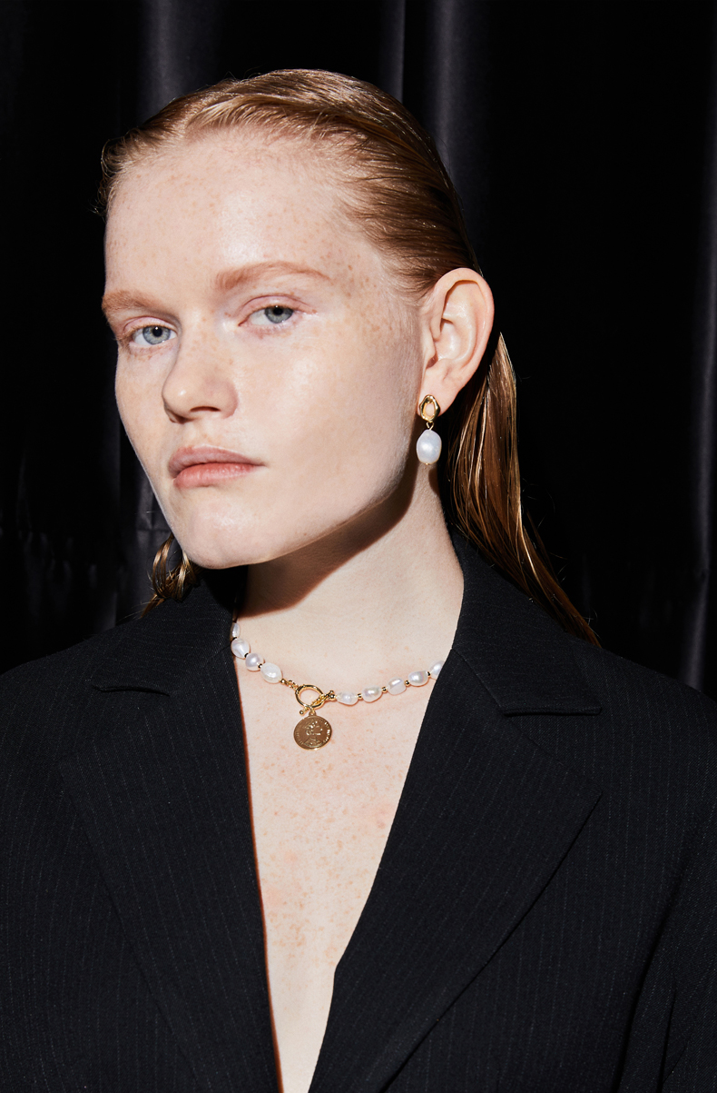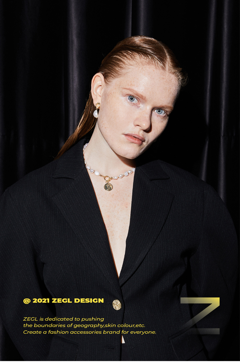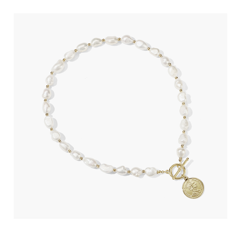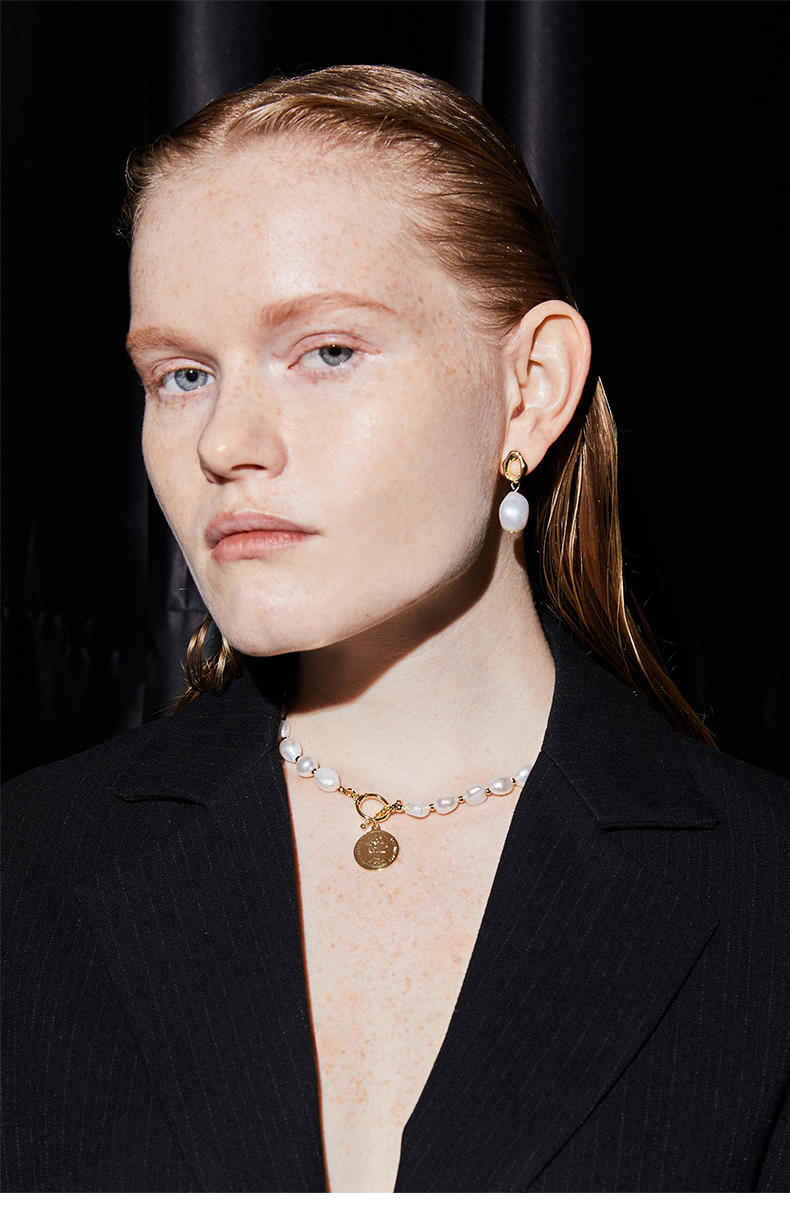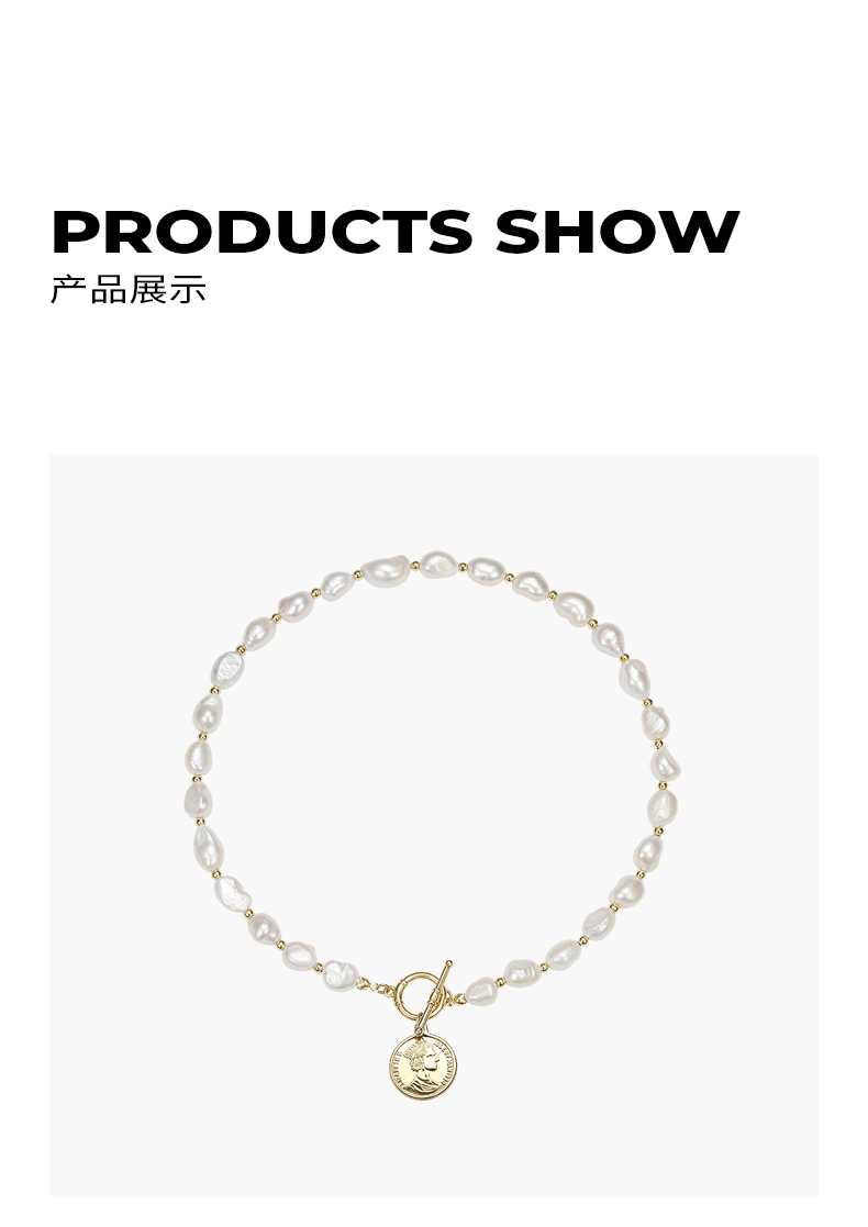 ZEGL巴洛克淡水珍珠项链女轻奢小众复古硬币人像吊坠短款锁骨颈链