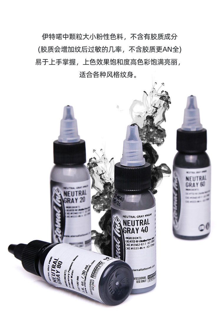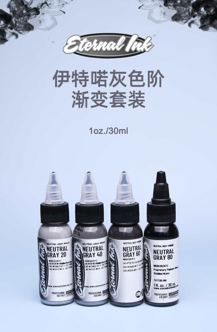 伊特喏刺青纹身色料伊特若4色灰色阶色料套装1盎司惊蛰刺青器材