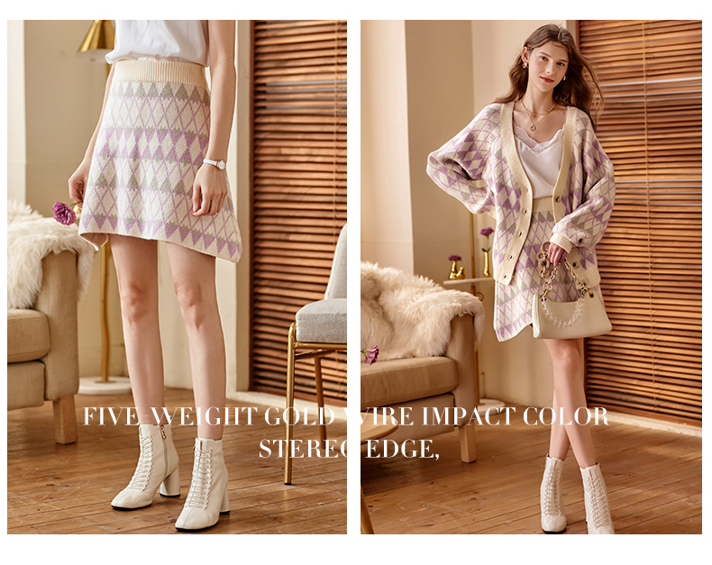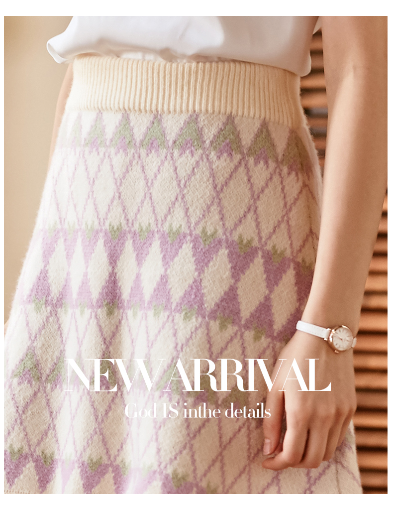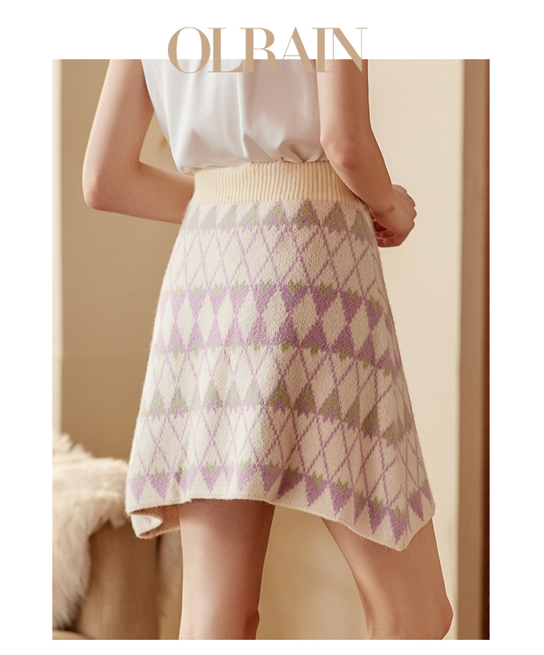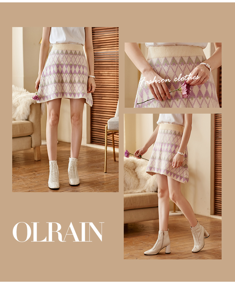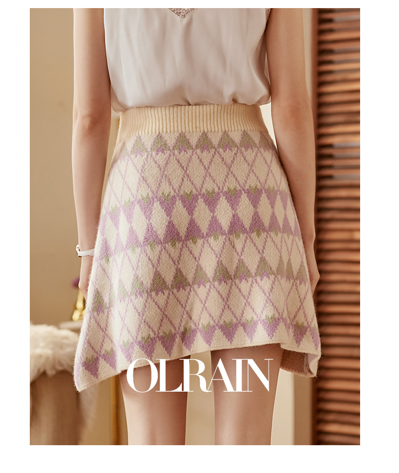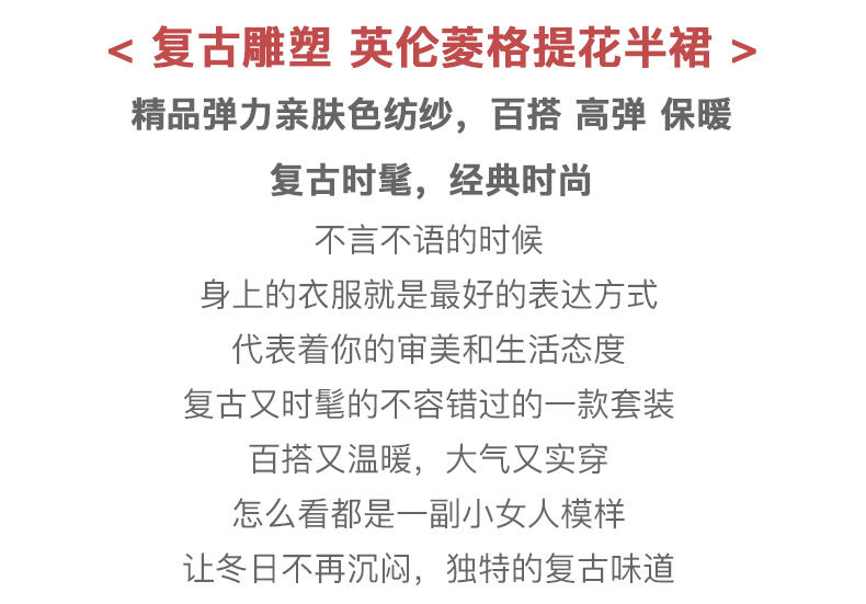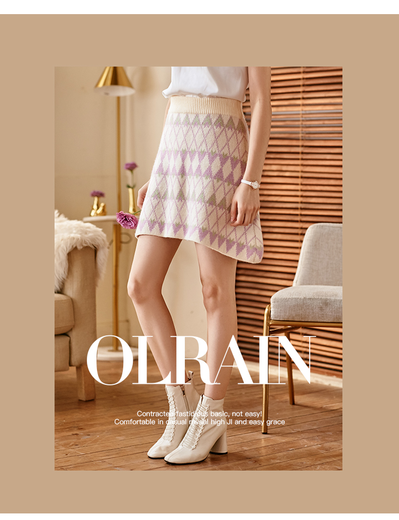 欧芮儿裙子女复古菱格提花半身裙时尚高腰显瘦A字裙