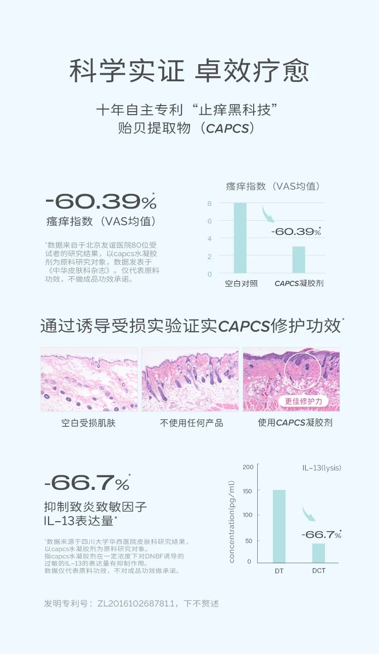 1、换季敏感爆发的时节,皮肤敏感红痒难耐,这款身体乳可30S秒速止痒,舒缓红斑红点、刺痛感和灼热感,2小时后皮肤含水量可提升270%,泛红可降低94.8%,皮肤得到滋润保湿褪红(均有检测报告),快速舒缓强效维稳不惧换季、过敏。