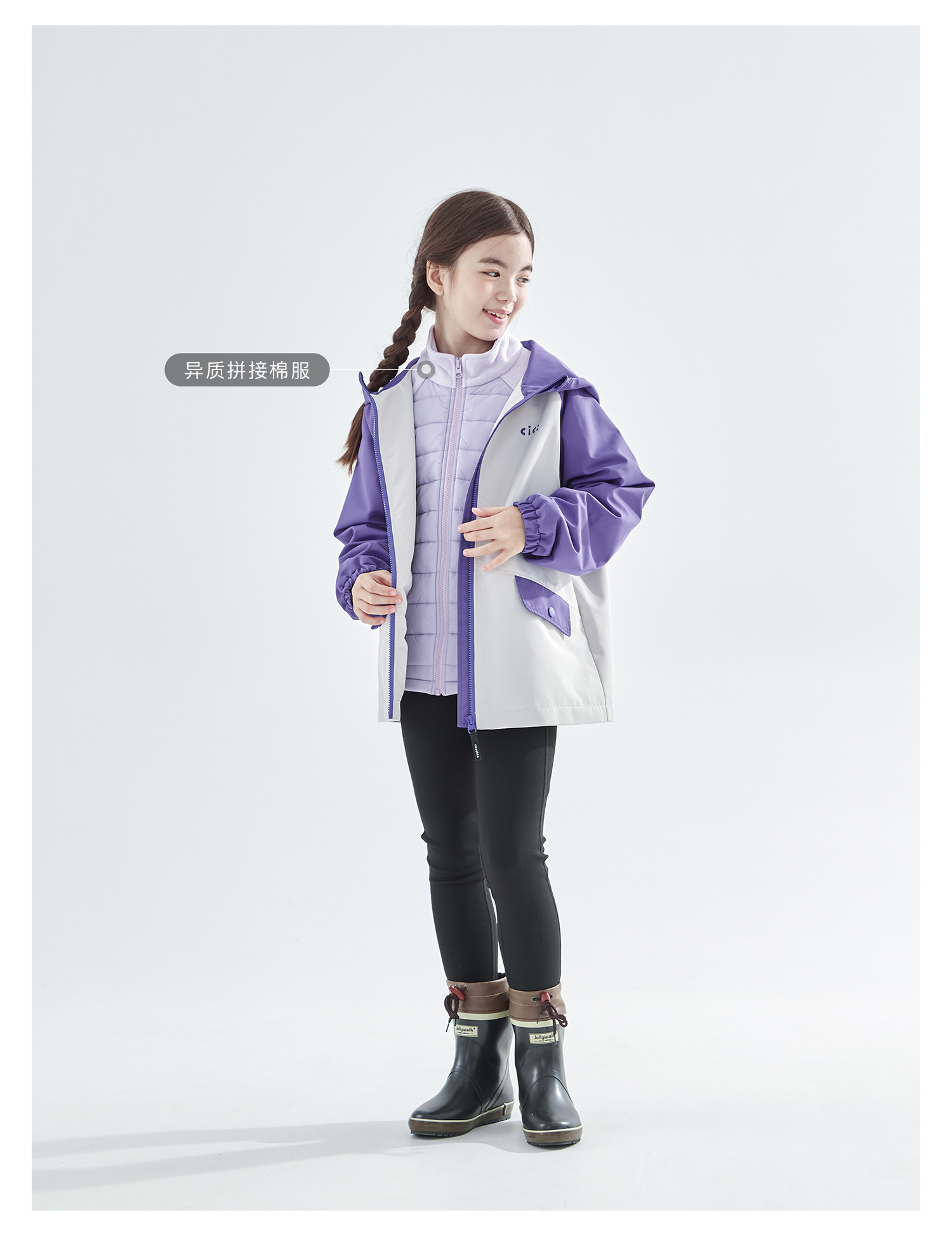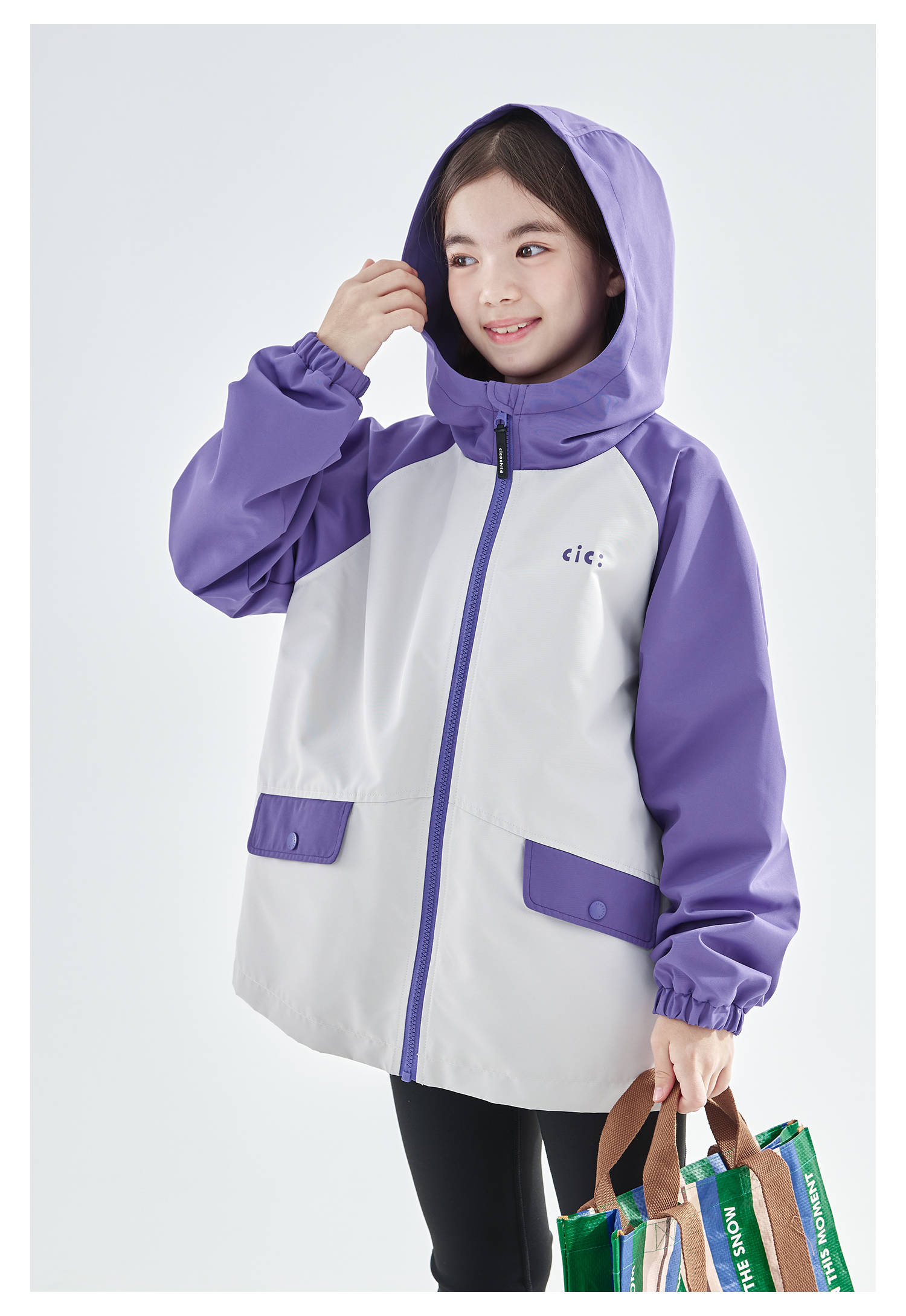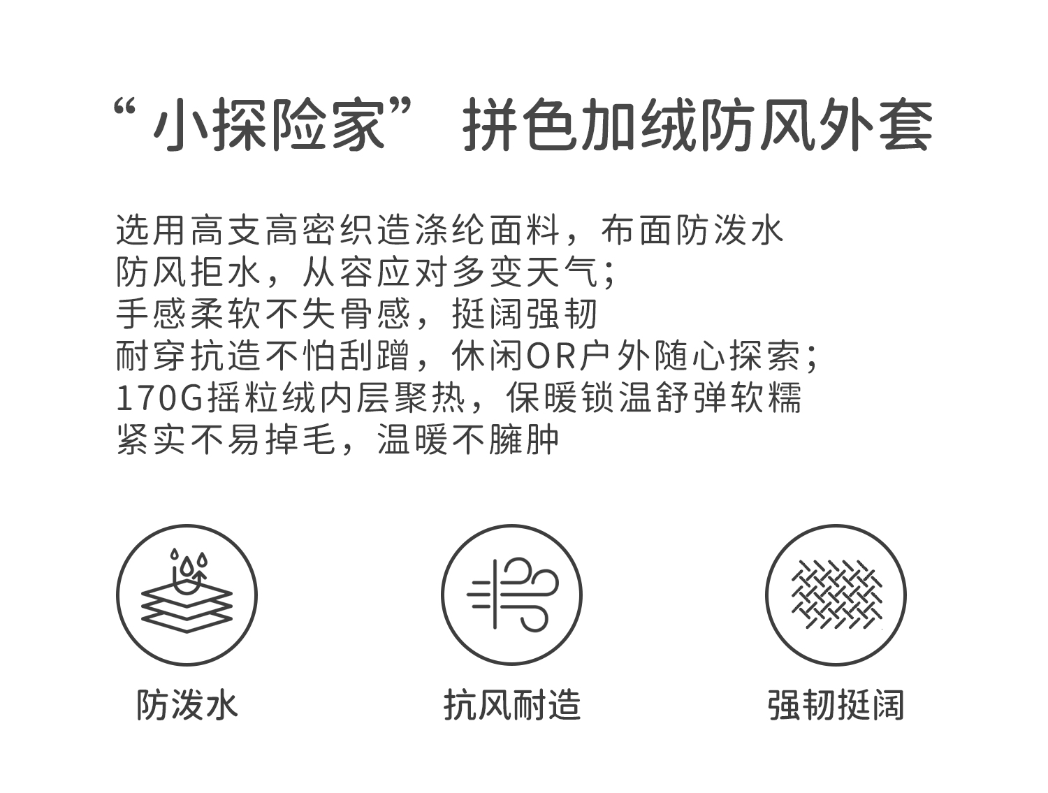 cicochild25年冬季新款亲子中大童拼色防风连帽外套防风加绒夹克