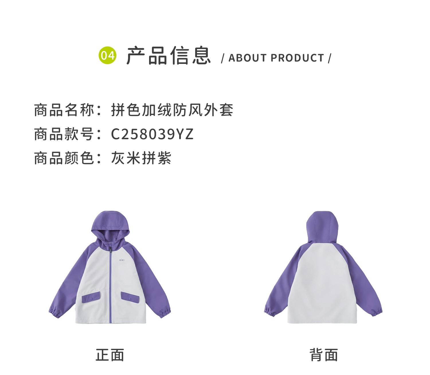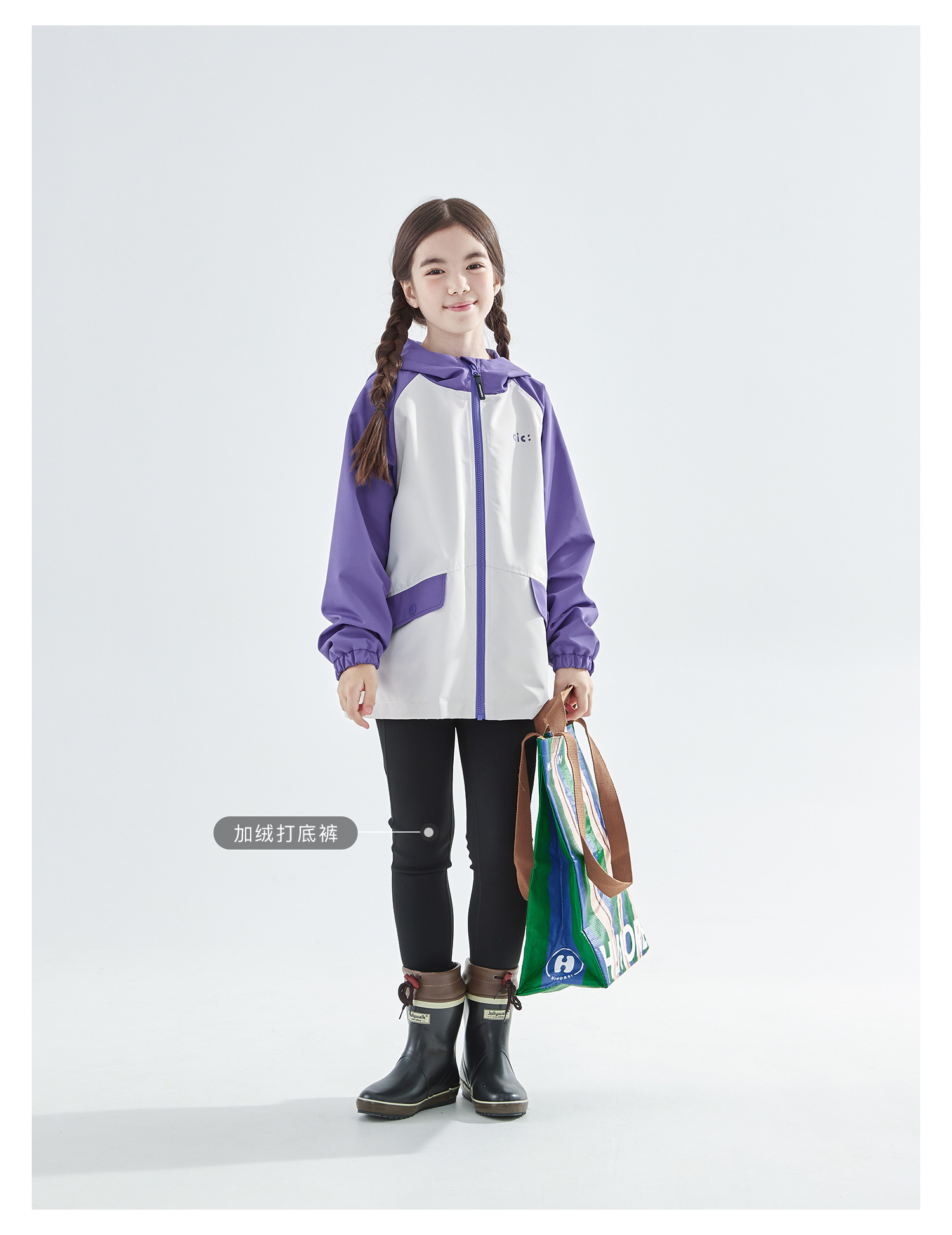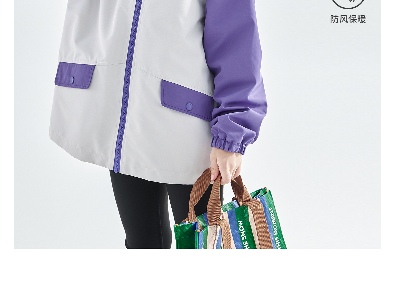 cicochild25年冬季新款亲子中大童拼色防风连帽外套防风加绒夹克