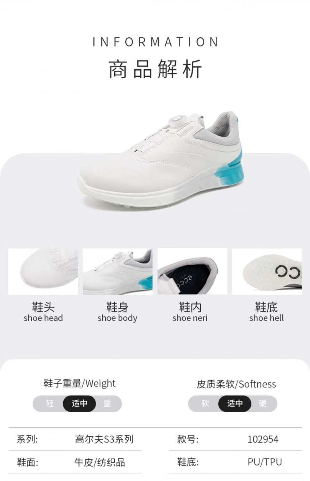 【高尔夫S3】ECCO爱步男子高尔夫球鞋BOA锁扭缓震排湿透气102954