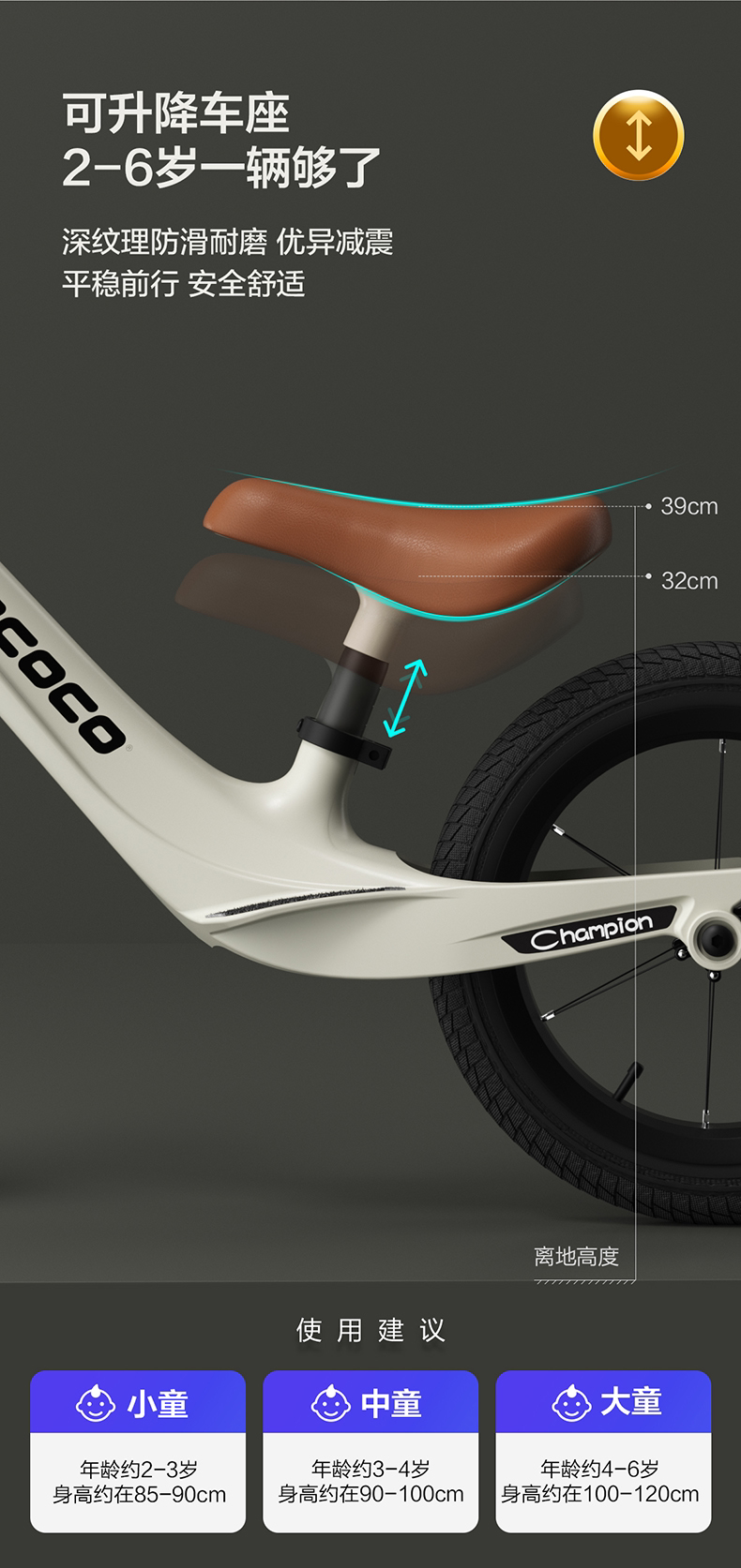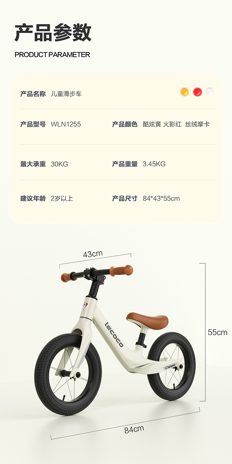 【积分商城】lecoco乐卡平衡车儿童滑行无脚踏学步车2-6岁幼儿滑步车宝宝 C-runX1plus