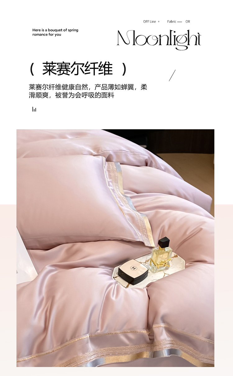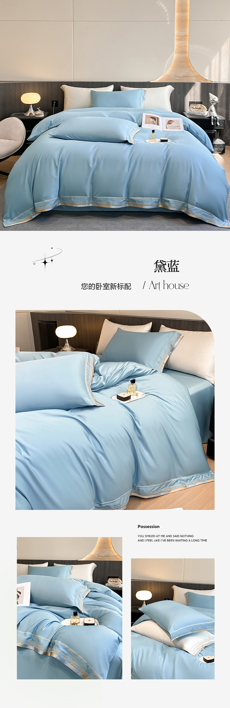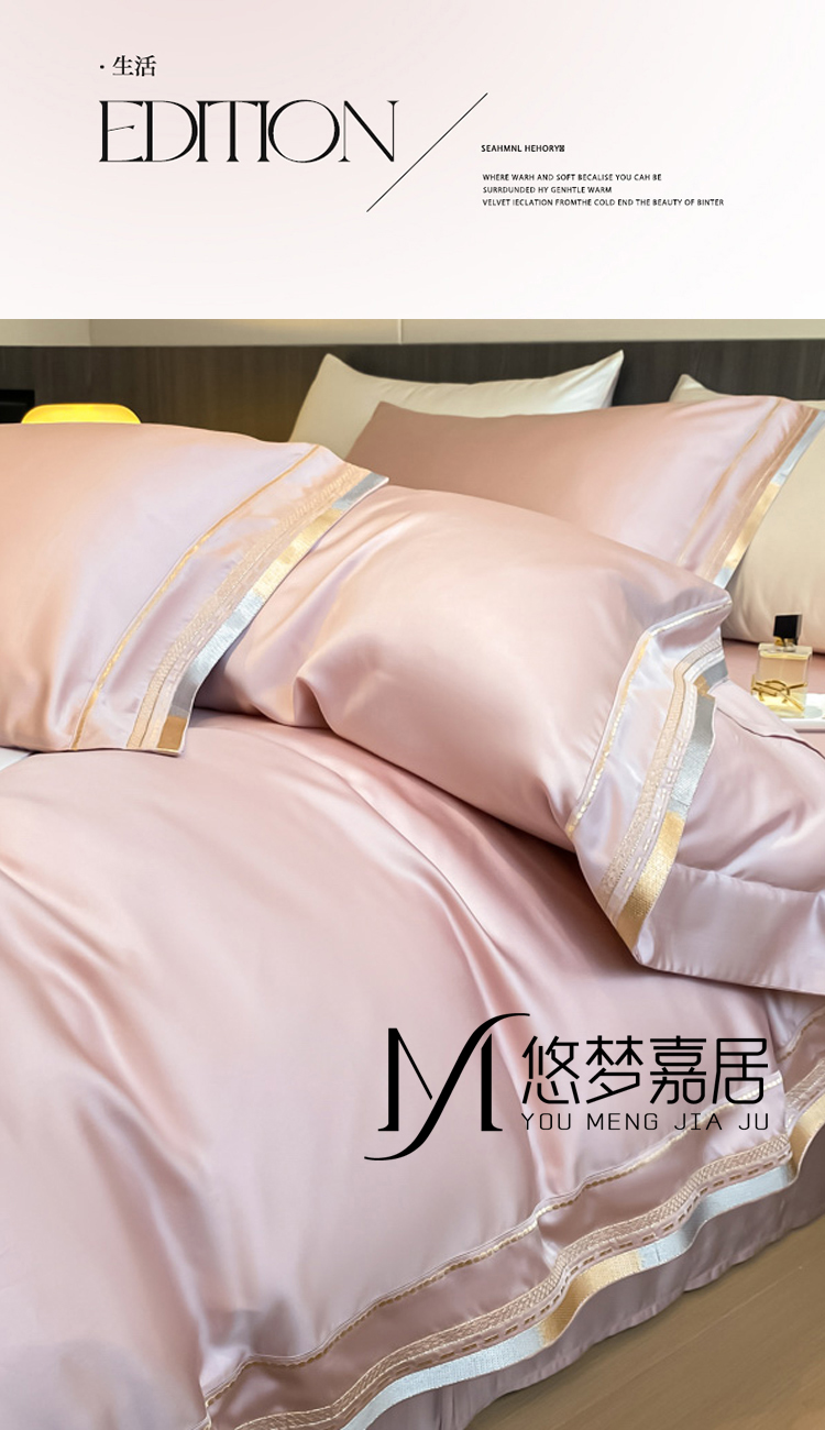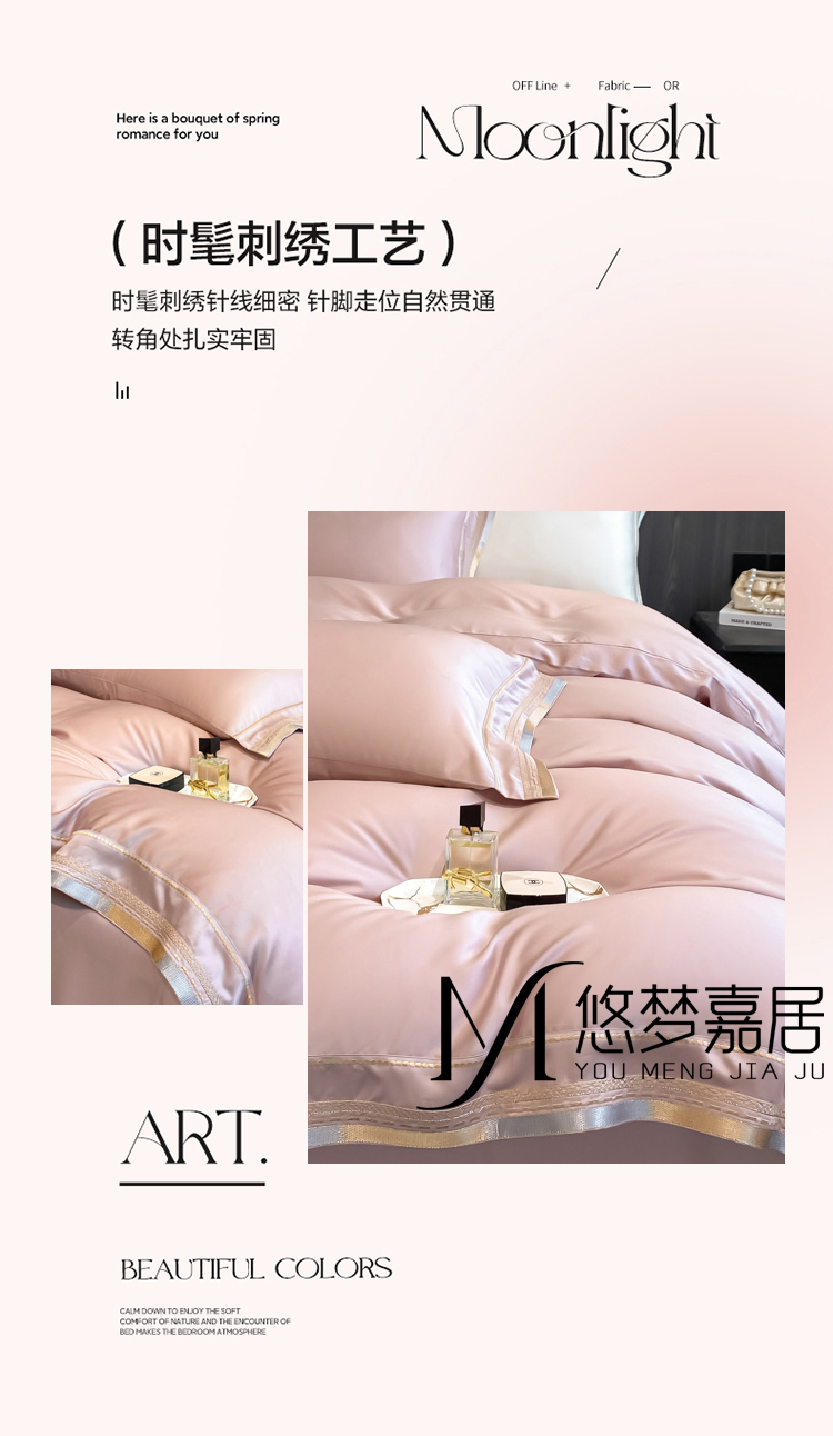 悠梦嘉居莱赛尔天丝刺绣四件套,本品选用100%莱赛尔纤维,冰凉舒滑夏季宠儿 1.5/1.8床通用 YJ-14599