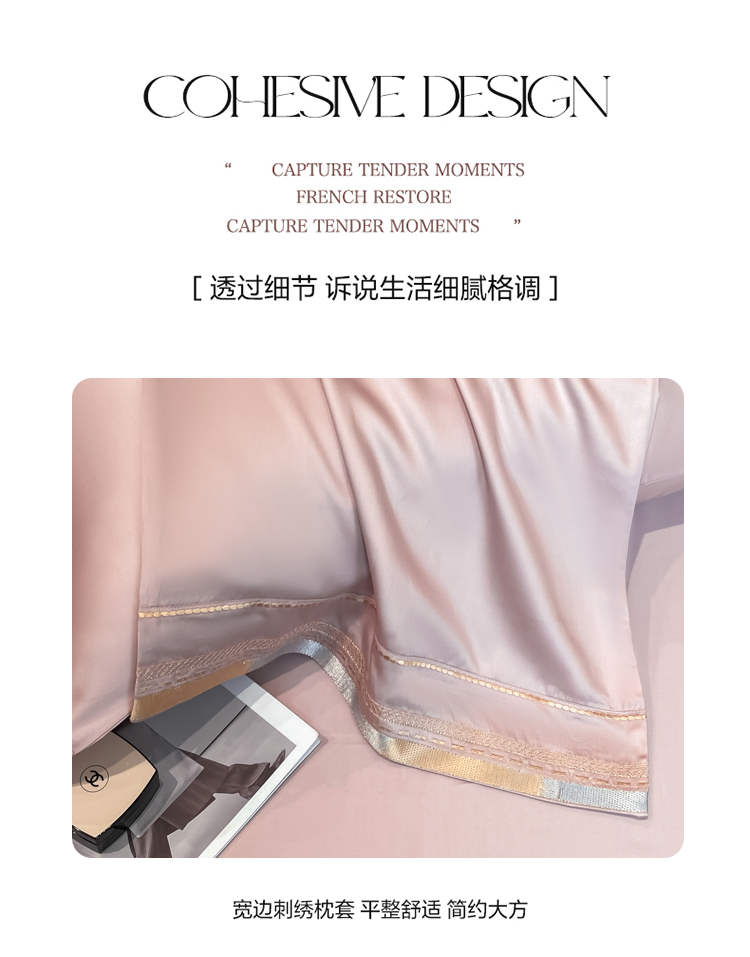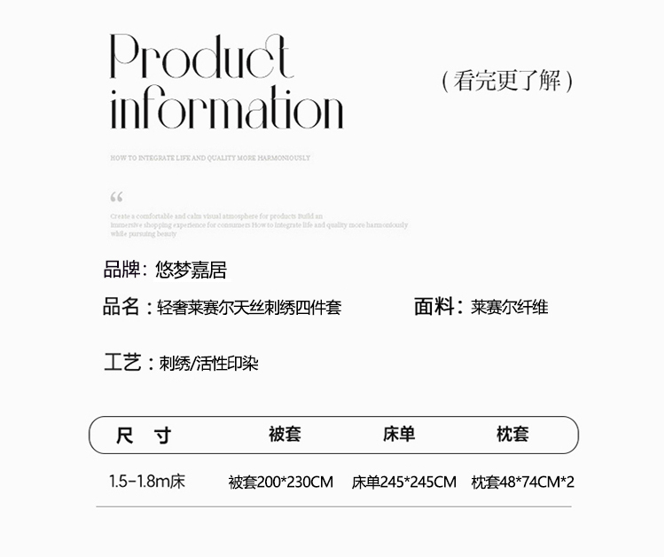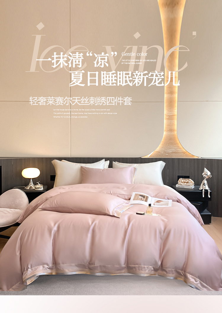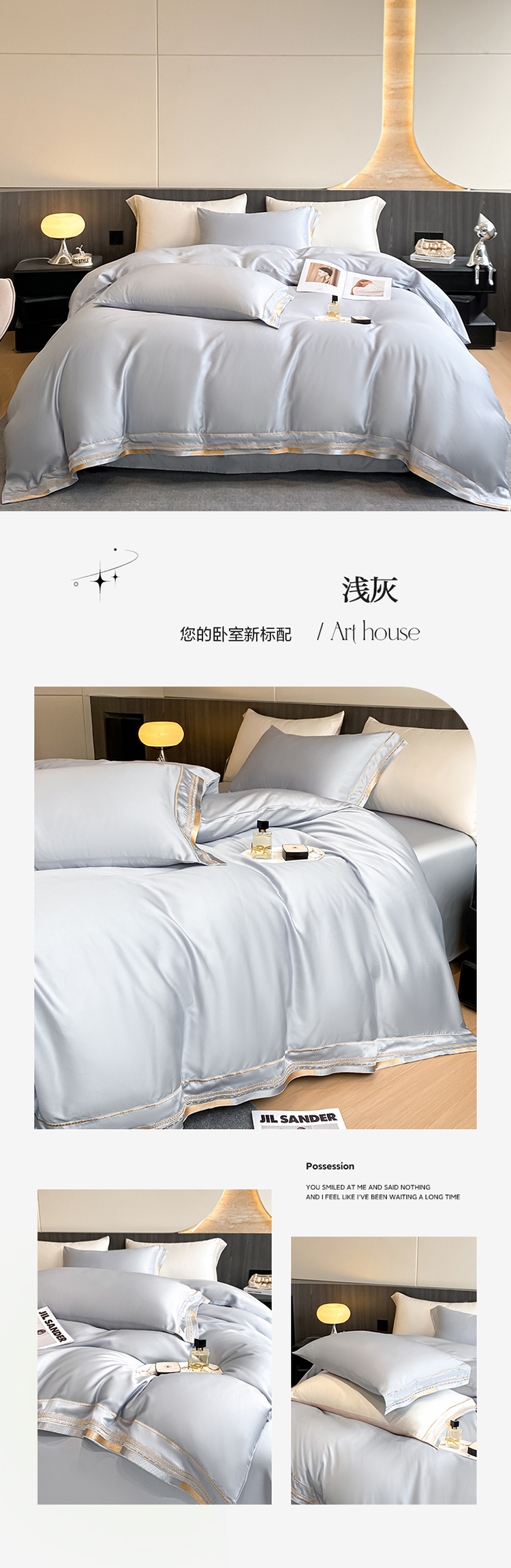 悠梦嘉居莱赛尔天丝刺绣四件套,本品选用100%莱赛尔纤维,冰凉舒滑夏季宠儿 1.5/1.8床通用 YJ-14599