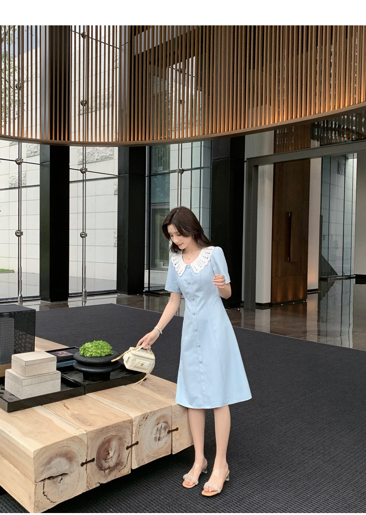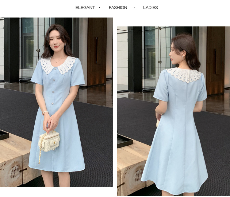 [奢姿轻奢系列]镂空撞色连衣裙2025年夏季大码女装减龄气质裙子8942891236【1】