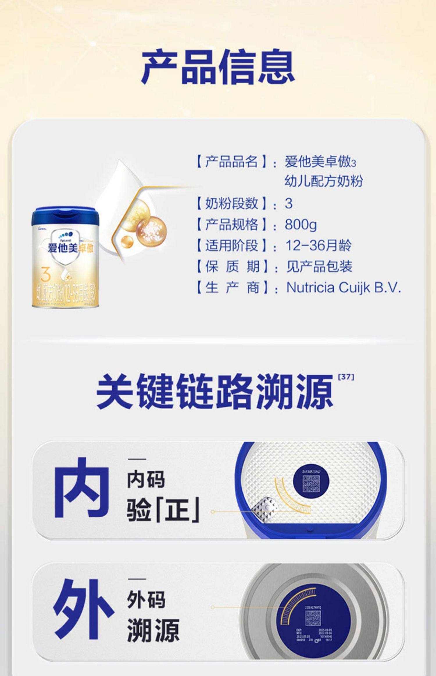 F/爱他美卓傲婴幼儿配方奶粉800g