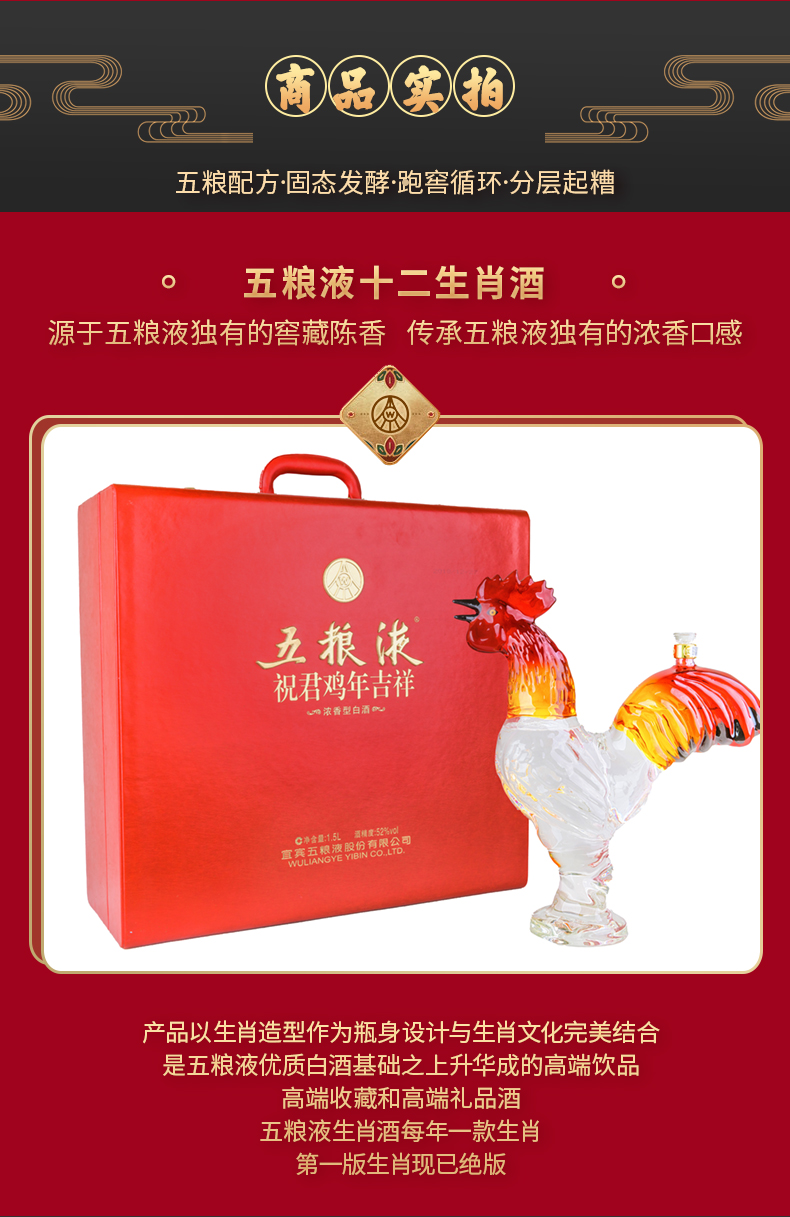 五粮液·祝君鸡年吉祥生肖酒 52度 1.5L*1瓶
