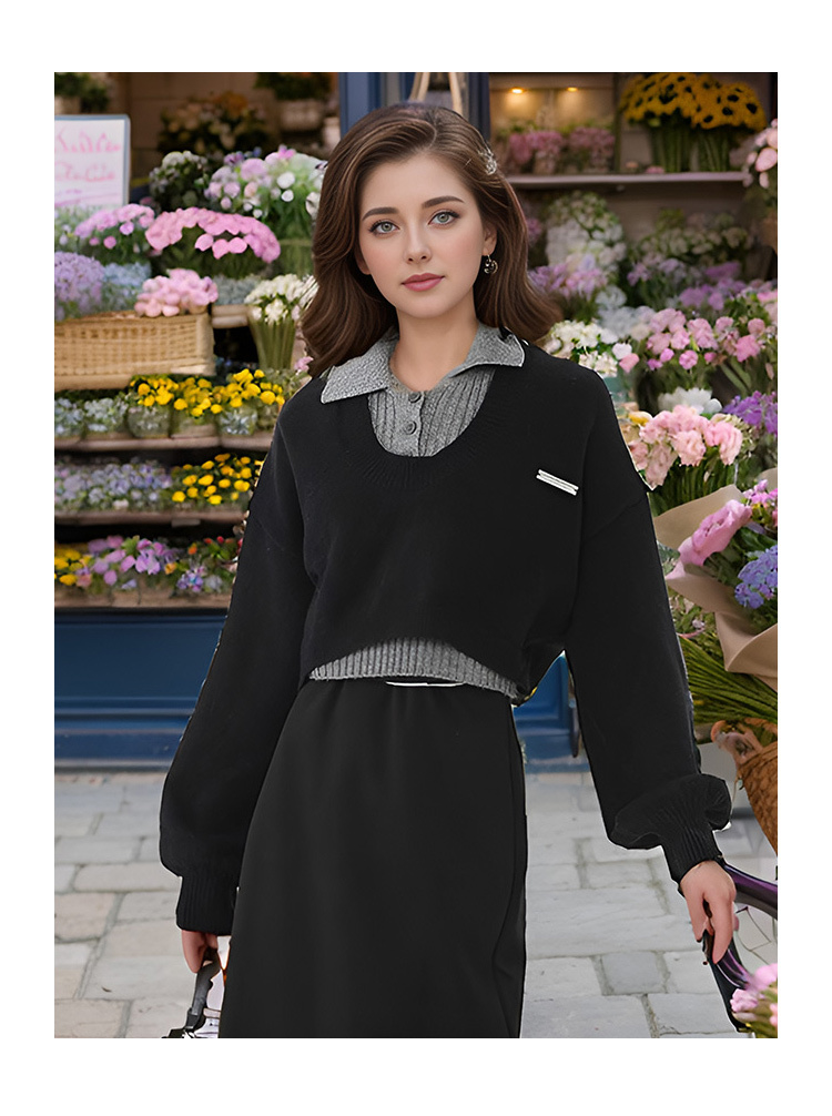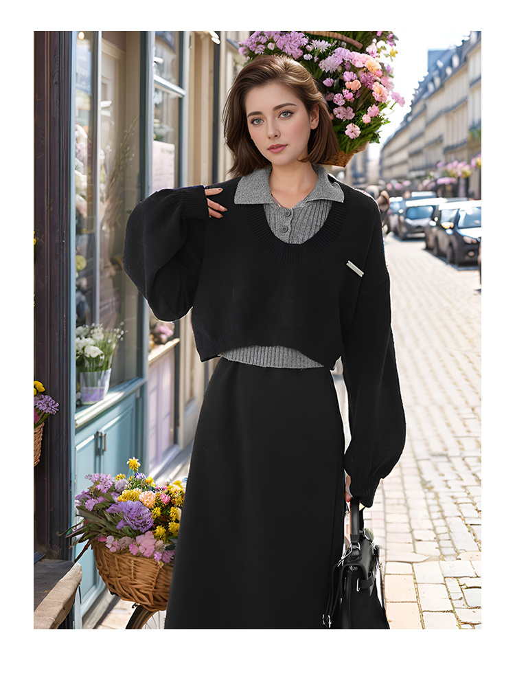 9/1奢姿大码女装2024秋冬气质翻领针织拼接两件套胖妹妹时尚简约套装9944930039