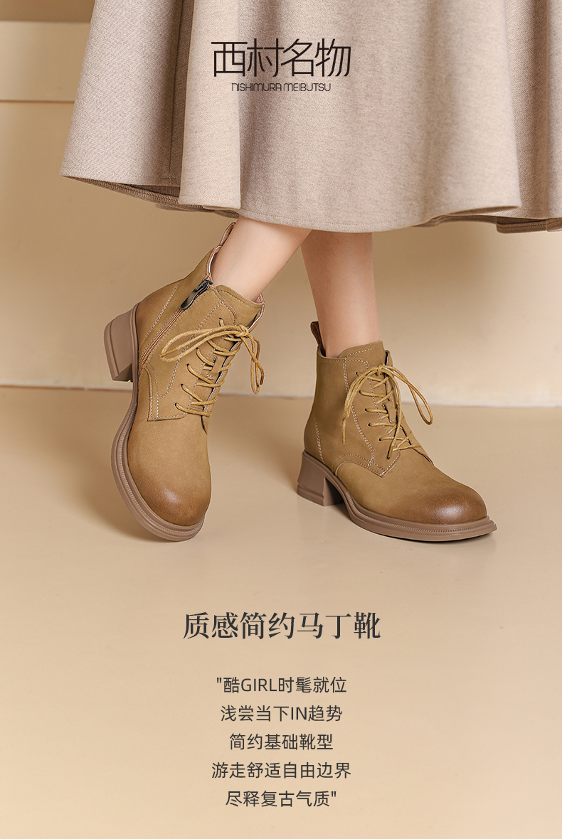 西村名物2024冬季新款质感简约马丁靴英伦风复古百搭短靴女X24DS47411