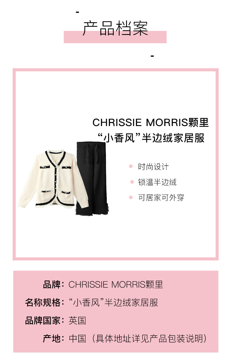 CHRISSIE MORRIS颗里 “小香风”半边绒家居服 时尚设计 锁温半边绒 可居家可外穿
