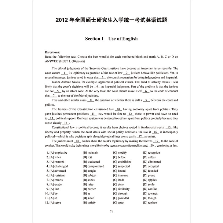 读者定位:考研英语(一)、(二)考生以及辅导考研英语的教师