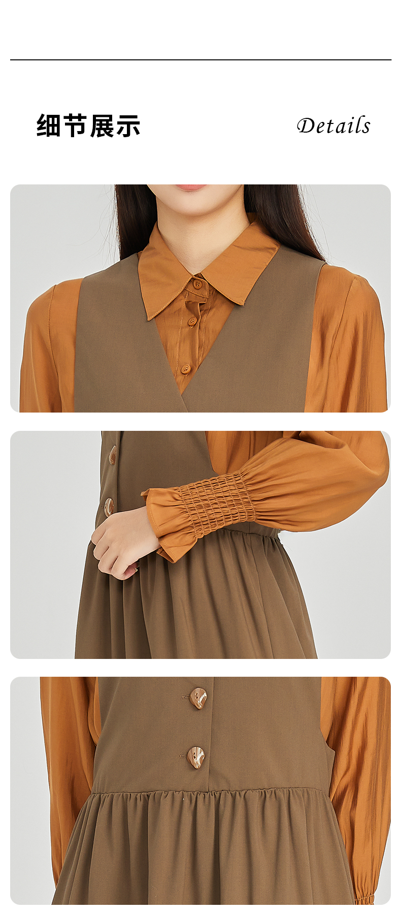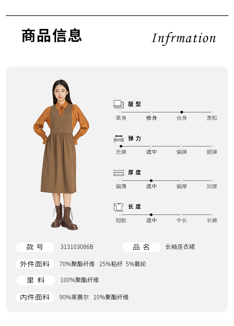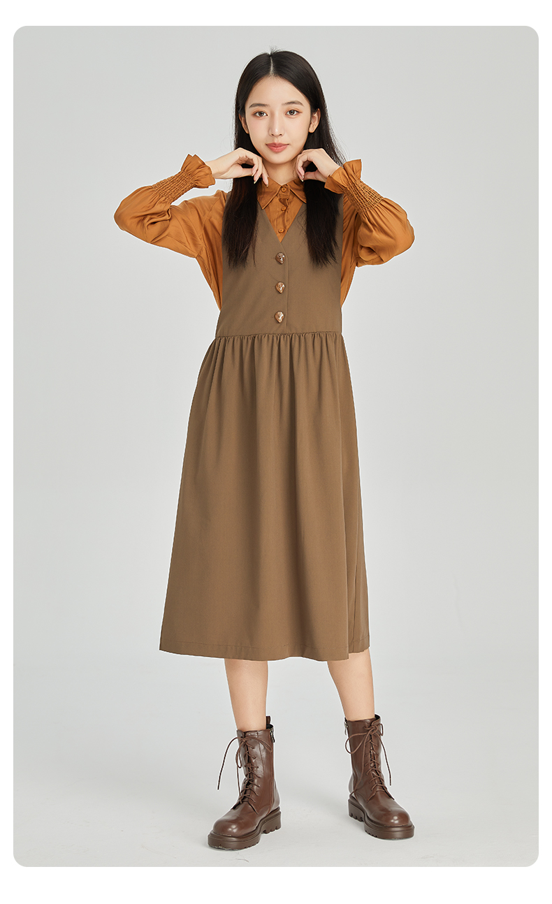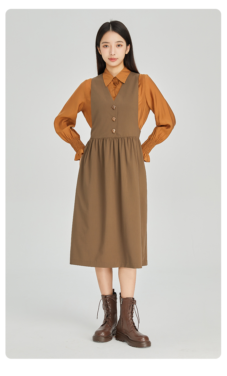 NUTS商场同款春秋时尚通勤气质宽松长袖连衣裙两件套女313103086B