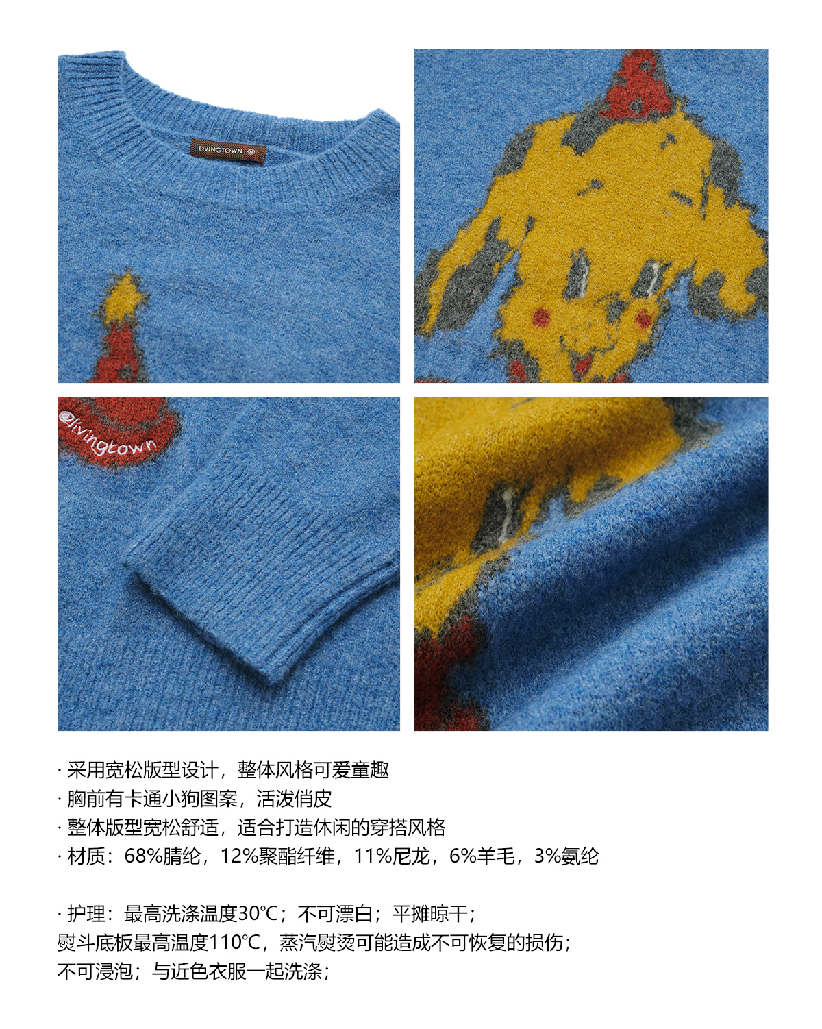 LIVINGTOWN/LT羊毛圆领卡通毛衣