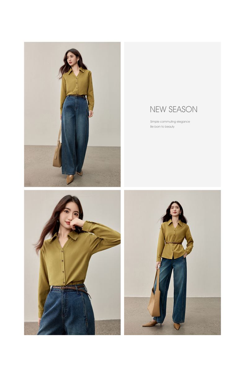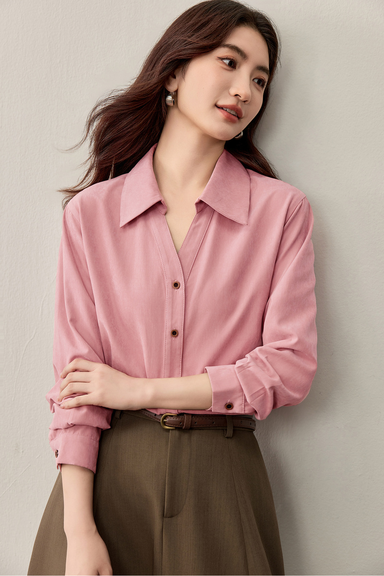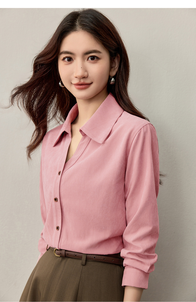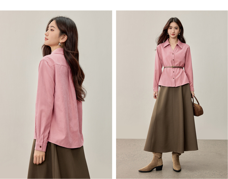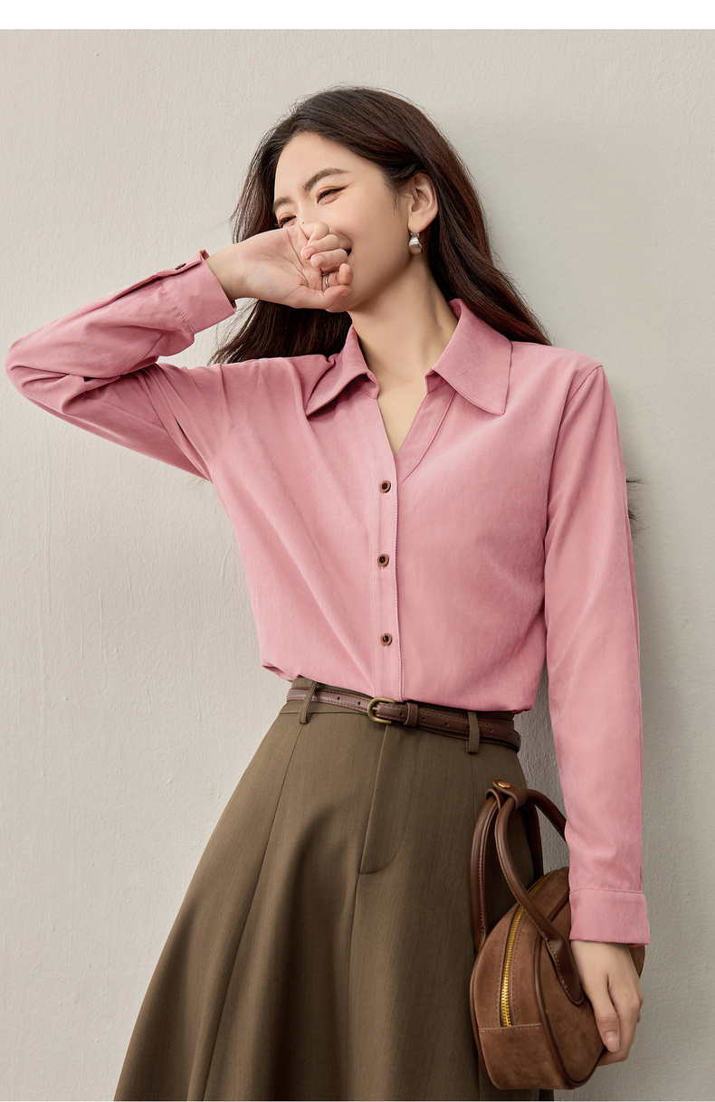 【内购】【撞色腰带】气质通勤V型翻领单排扣可拆卸腰带长袖桃皮绒衬衫-W53CA2862